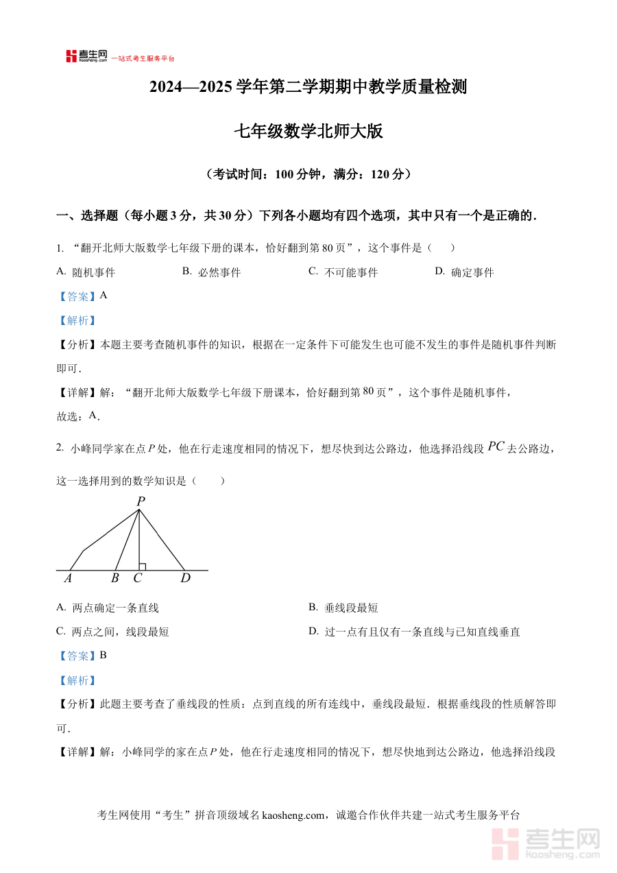 此资料适用于河南省郑州市新郑市2024-2025学年七年级学生、数学教师及学生家长,对于学生而言可通过解析掌握解题思路与方法提升阶段学习效果,对于教师和家长能借助资料了解考试特点更好指导学生进行阶段检测后的复盘与备考规划,具有较强实用价值。