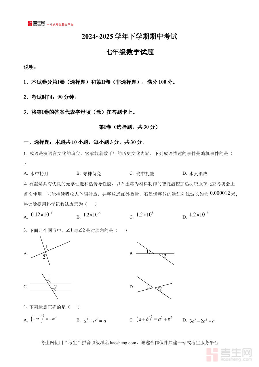 《精品解析:河南省郑州市桐柏一中2024-2025学年七年级下学期期中数学试题(原卷版)》是针对河南省郑州市桐柏一中2024至2025学年七年级下学期期中数学考试的备考资料。它依托该学校对应学年及阶段的数学期中测试场景,为使用者提供与实际考试直接关联的原卷资源,帮助其提前熟悉考试的整体形式与考查方向。