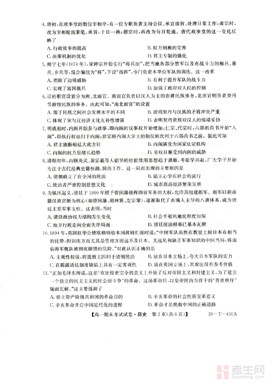 《陕西省榆林市靖边县靖边中学2025-2026学年高一上学期期末考试历史试卷(PDF版,含解析)》是针对陕西省榆林市靖边县靖边中学2025-2026学年高一学生的上学期期末历史考试的备考资料,涵盖该阶段历史学科的期末检测需求,为学生提供贴合本校考试情境的练习载体。