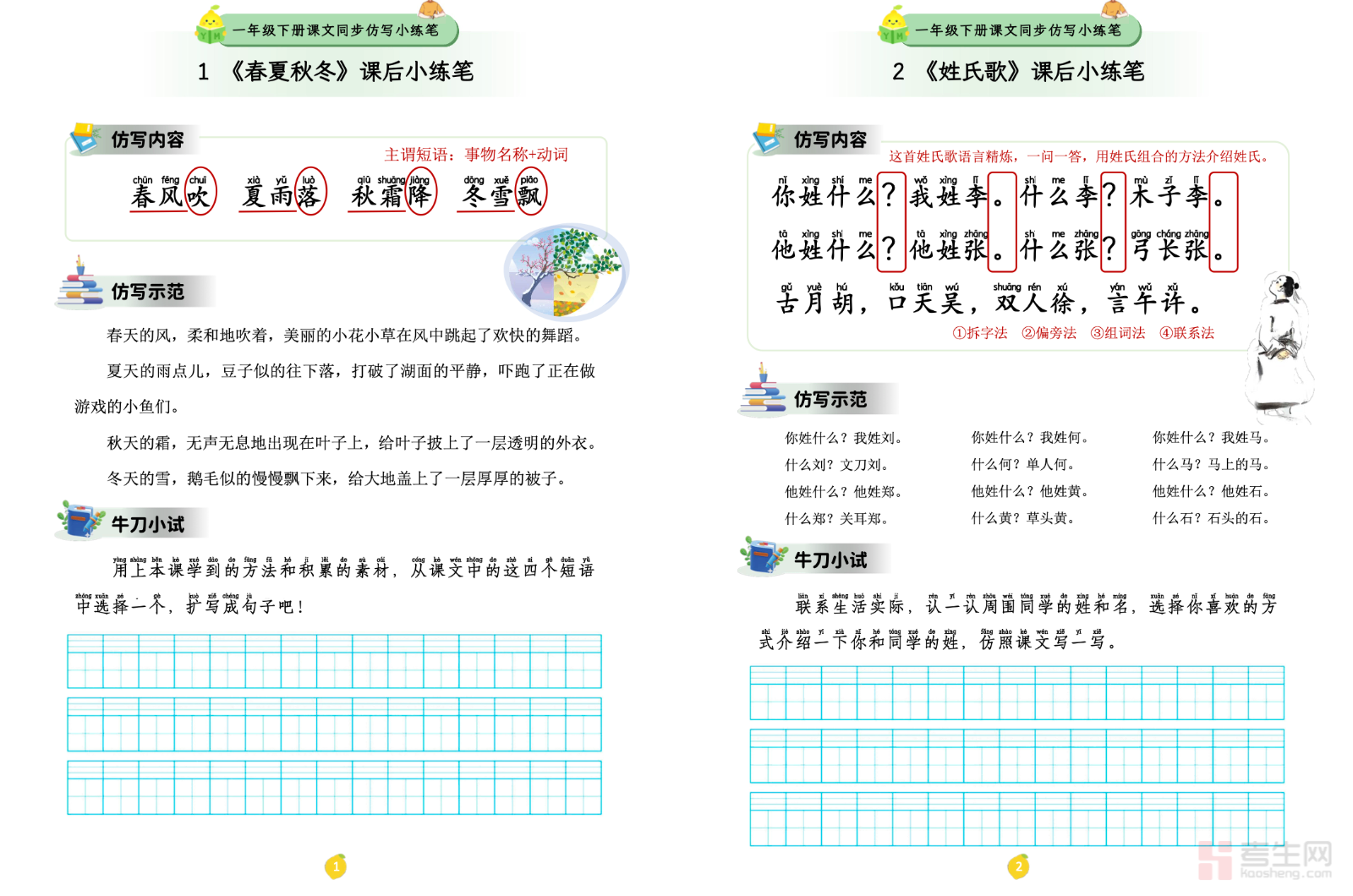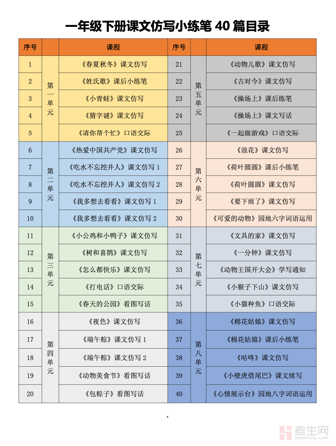 小学语文 1-4 单元仿写小练笔(一年级下册)同步部编版一年级下册语文教材前四单元内容,贴合低年级识字写话起步阶段特点,设计简单词语仿写、短句仿写、看图仿写、叠词运用、句子补充等趣味练习,内容生动简单、循序渐进。重点训练孩子规范用词、语句通顺、简单表达、观察事物的基础能力,帮助孩子积累常用句式,培养初步写话兴趣,告别表达困难。适合一年级学生课后练习、课堂巩固、单元写话铺垫、启蒙写作训练,为后续语文写作打下扎实基础。请添加微信 18617049513 进专属群,获取更多免费资源