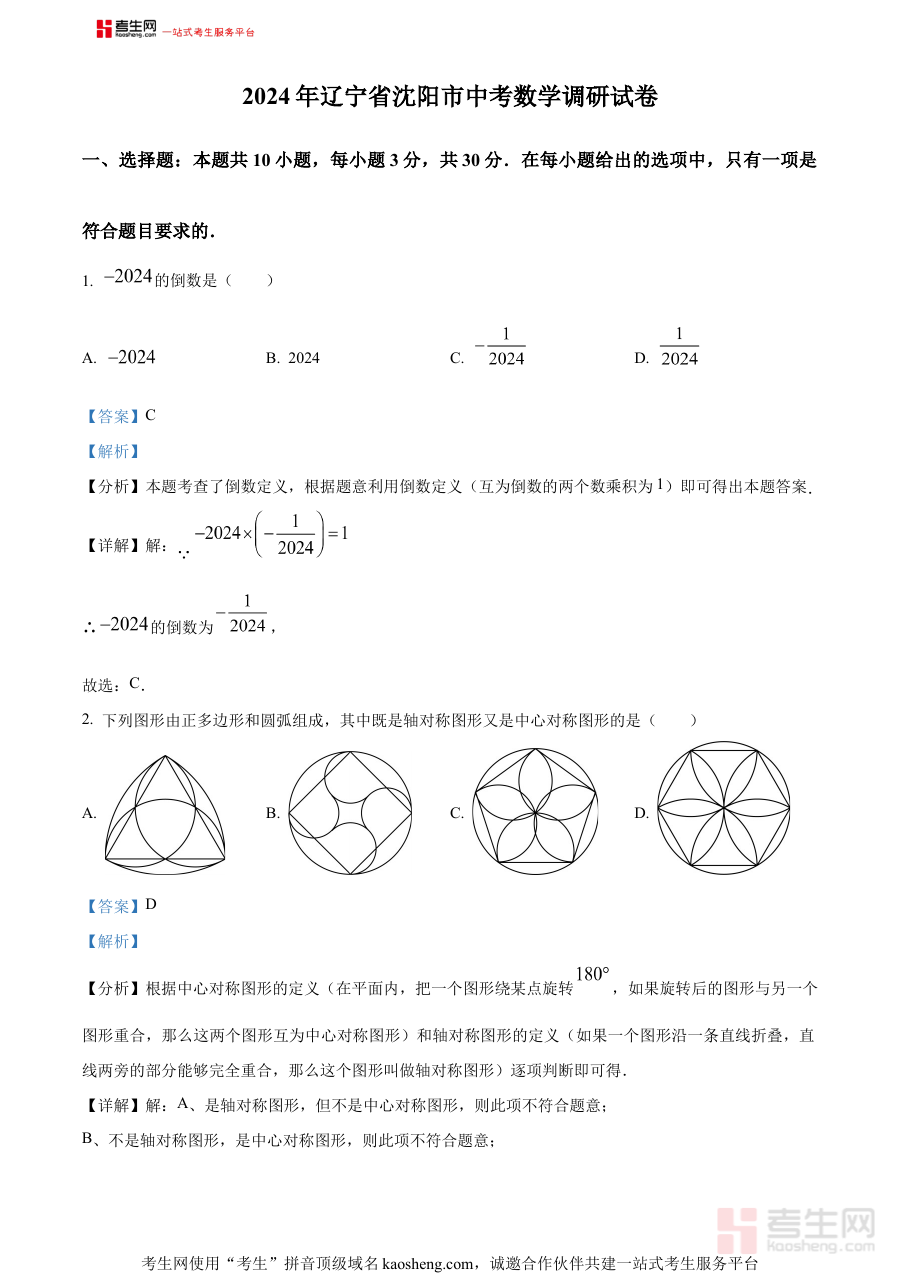 《精品解析:2024年辽宁省沈阳市中考数学调研二模试题(解析版)》是针对2024年辽宁省沈阳市中考数学学科的调研二模试题及配套解析资料,属于中考备考阶段的关键辅助资源,能够为考生提供贴合本地考试方向与命题趋势的练习素材。