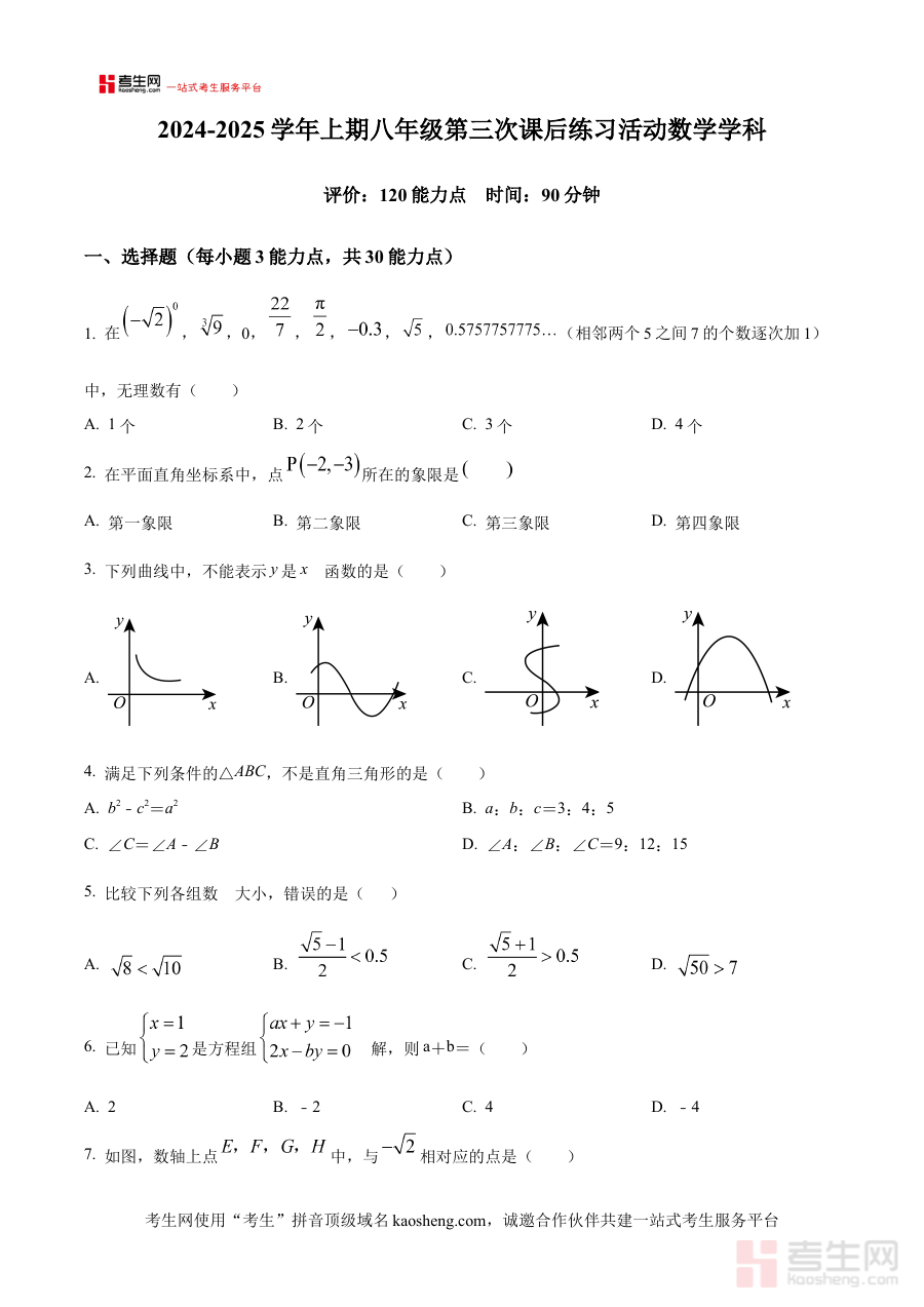 《精品解析:河南省郑州四中实验学校2024—2025学年八年级上学期第三次课后活动数学试卷(原卷版)》是针对河南省郑州四中实验学校2024至2025学年八年级上学期开展的第三次课后活动设计的数学试卷原卷资料,为该阶段学生提供贴合校内学习进度的备考支持。
