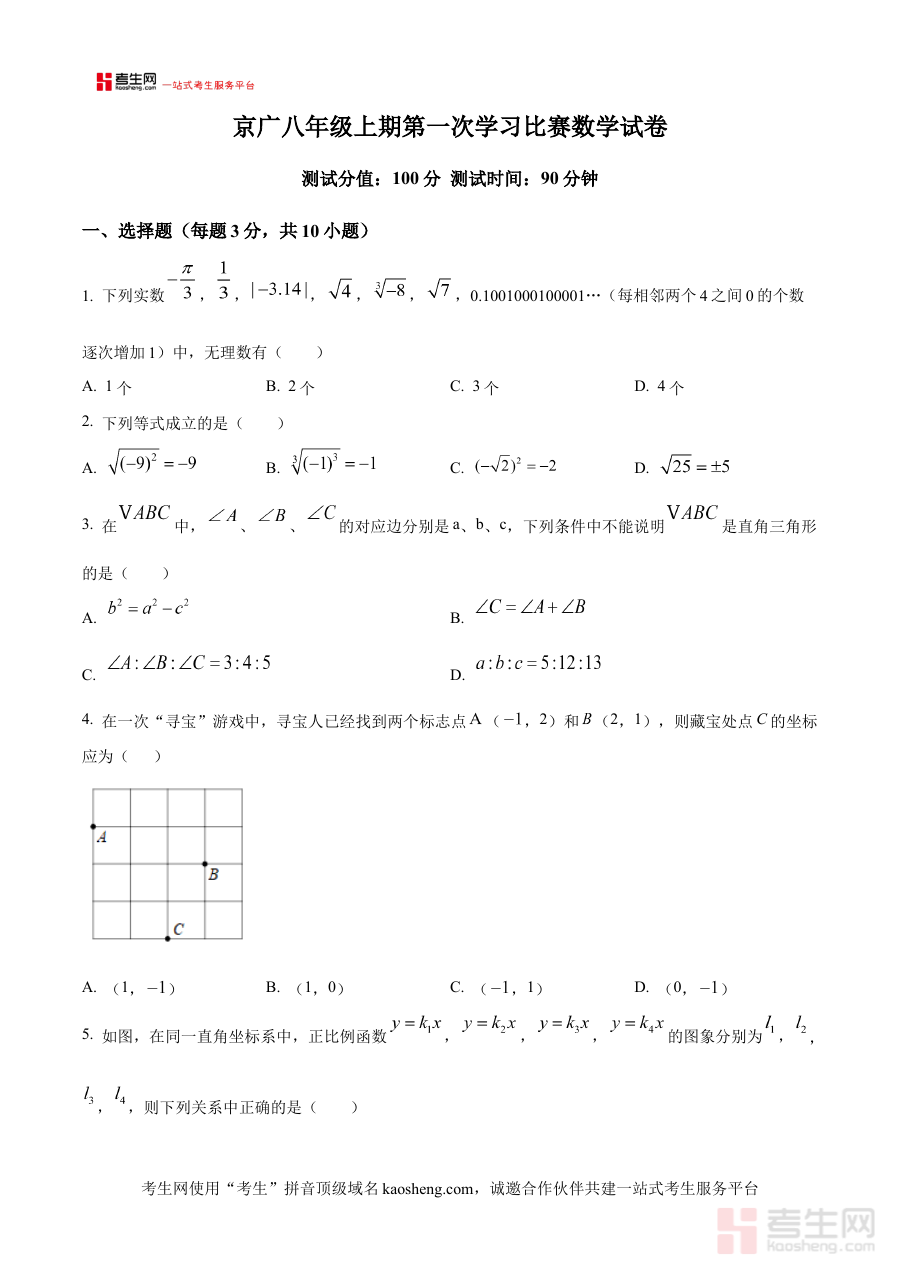 《精品解析:河南省郑州市二七区京广实验中学2024-2025学年上学期八年级数学第一次月考试卷(原卷版)》是针对河南省郑州市二七区京广实验中学2024-2025学年上学期八年级数学学科首次月度检测设计的备考资料,精准匹配该校该阶段数学教学的阶段性考查需求,为学生提供贴合本校实际教学进度的练习资源。