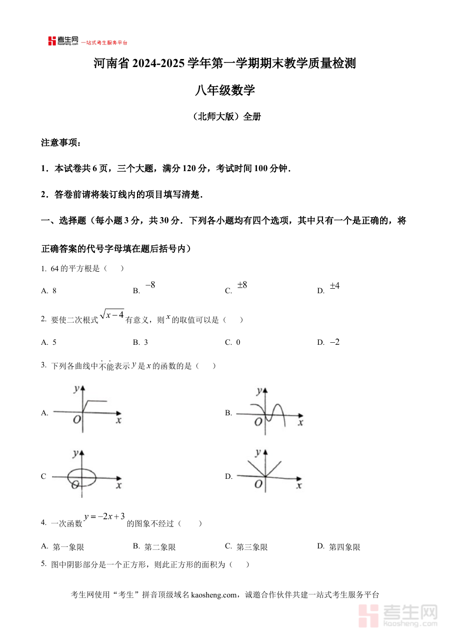 该资料主要适用于河南省郑州市新郑市2024-2025学年的八年级学生、数学教师及相关教育工作者。对于学生而言,通过这份原卷版试题可提前熟悉月考的题型结构与难度水平,助力制定更具针对性的备考计划;对于教师来说,它可作为课堂练习、阶段性评估或教学素材的补充,帮助提升教学的精准度与有效性,更好地服务于学生的阶段学习需求。