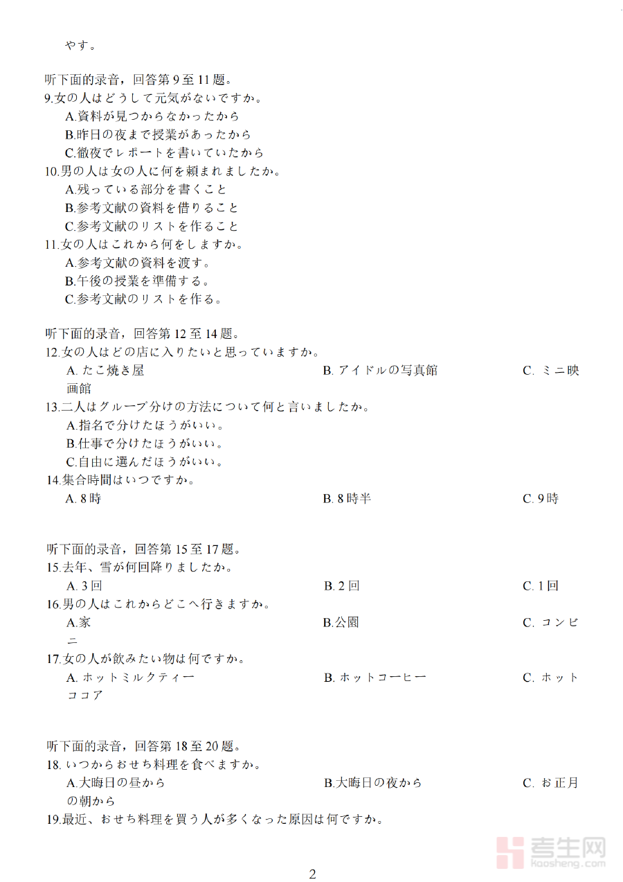 该资料的适用人群主要为2026届苏北四市高三日语考生,同时也适用于其他地区希望借鉴苏北区域模拟考试标准进行备考的日语学习者。通过完成试卷并结合参考答案进行分析总结,考生能够有效检测阶段学习成果,及时弥补知识漏洞;对于教师而言,这份资料可支持教学评估与个性化指导,进一步提升教学质量与学生备考的针对性,助力考生在高考前做好充分准备。