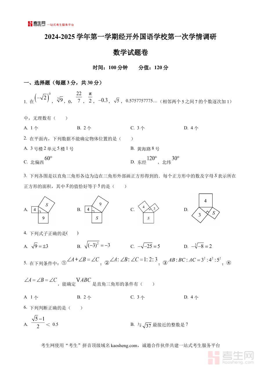 《精品解析:河南省郑州市经开区外国语学校 2024-2025学年八年级上学期第一次月考数学试卷(原卷版)》是针对河南省郑州市经开区外国语学校2024至2025学年八年级上学期第一次月考的数学学科备考资料,聚焦该阶段数学学习的阶段性考查需求,为相关使用者提供贴合本校考试实际的练习与参考载体。