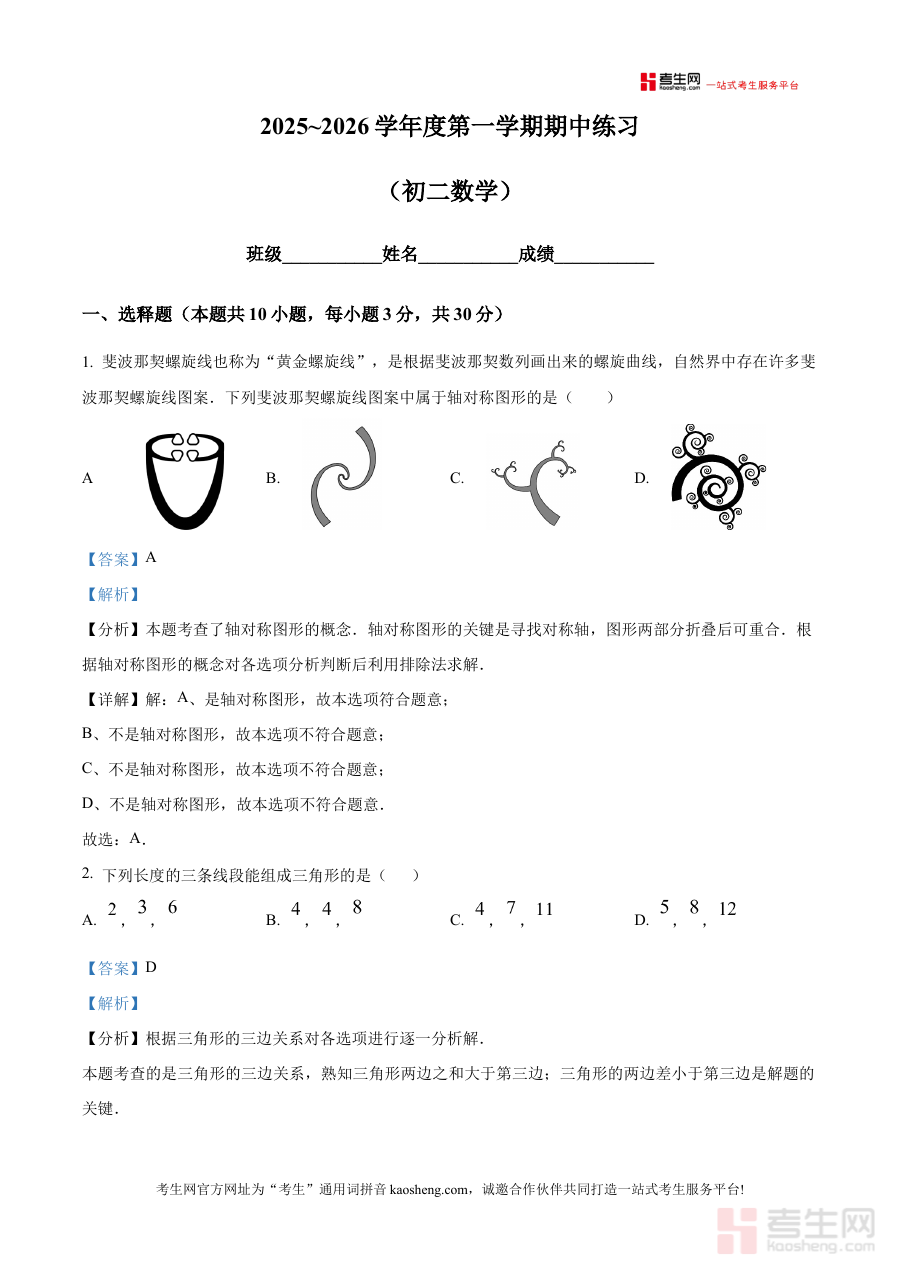 该资料主要适用于北京市北京外国语大学附属中学2025-2026学年八年级学生,用于期中数学考试后的复盘总结与备考提升;此外,同地区同年级的其他学生也可将其作为阶段学习参考资源,借助该校期中数学考试的解析内容框架,了解期中考查方向与核心要求,增强自身阶段学习的针对性与有效性。