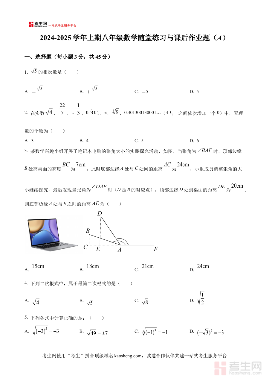本练习卷适用于河南省郑州枫杨外国语学校2024至2025学年上学期的八年级学生,通过完成该练习卷,学生可有效检验开学初期的数学学习效果,精准定位学习短板,为后续阶段的数学学习与备考做好针对性准备,助力提升阶段性学习质量。