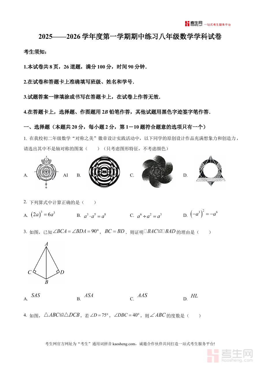 《精品解析:北京市北京大学附属中学2025~2026学年上学期八年级期中数学试卷(原卷版)》是针对北京市北京大学附属中学2025至2026学年上学期八年级学生期中数学考试的备考资料,聚焦该学年上学期期中阶段的数学学习内容,为学生提供与校内考试直接相关的练习载体,帮助其提前适应考试场景与要求。