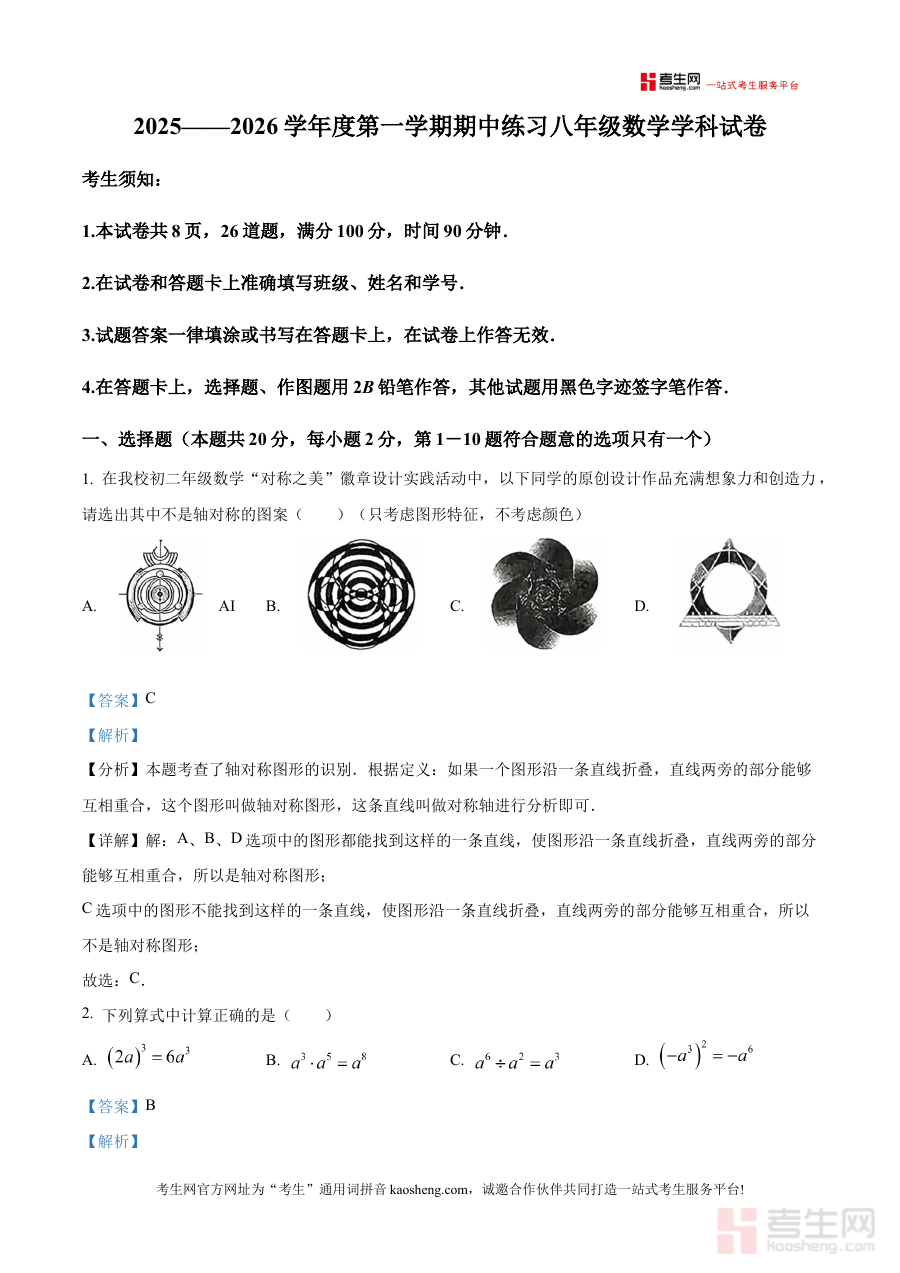 本资料适用于北京市北京大学附属中学2025至2026学年上学期的八年级学生,通过解析版内容,学生能更高效地完成期中备考规划,提升阶段检测的准备效率,同时也为教师开展期中复习指导、家长辅助孩子学习提供了专业的参考依据。