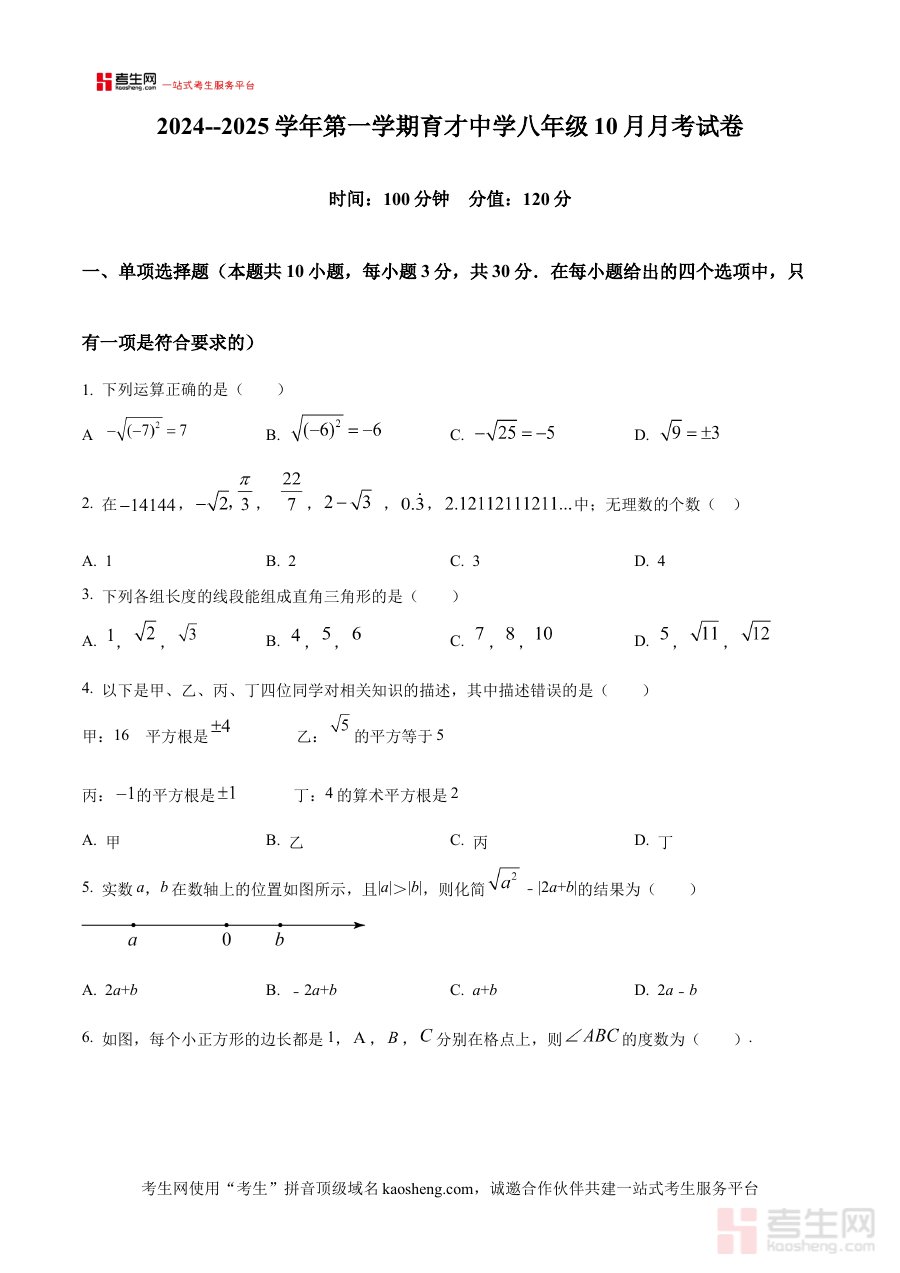 《精品解析:河南省郑州经济技术开发区育才中学2024-2025学年八年级上学期第一次月考数学试卷(原卷版)》是针对河南省郑州经济技术开发区育才中学2024至2025学年八年级上学期数学学科第一次月考的配套备考资料,聚焦该阶段阶段性考试需求,为相关教学与学习活动提供对应参考依据。