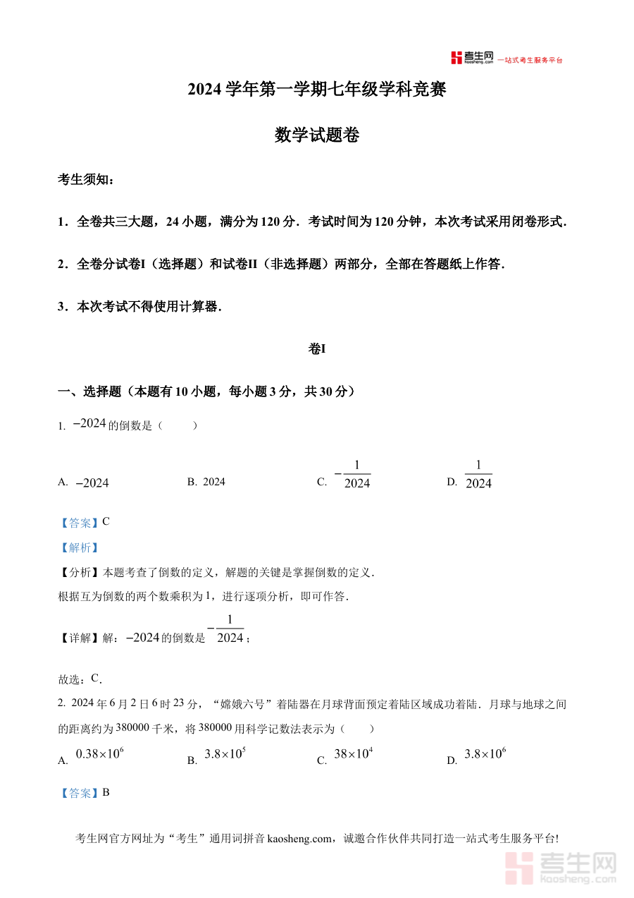 本资料适用于浙江省宁波市余姚市余姚城区学校的七年级学生,尤其是参与该学业竞赛及12月月考的学生群体,通过使用该解析版资料,学生可更清晰地把握考试要求,优化学习策略,提升应对阶段检测与竞赛的能力,为后续数学学习奠定坚实基础。