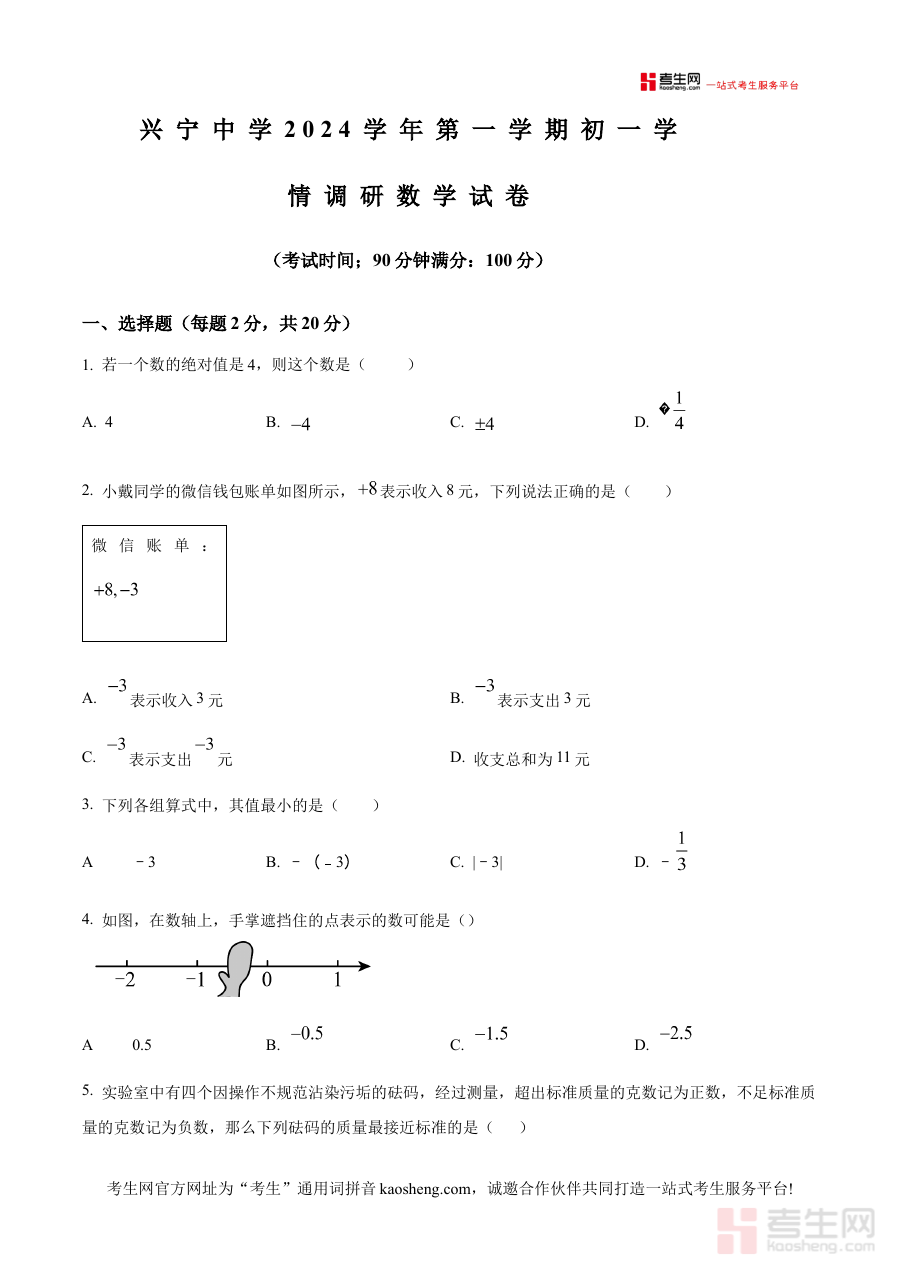 《精品解析:浙江省宁波市兴宁中学2024-2025学年七年级上学期第一次月考数学试题(原卷版)》是针对浙江省宁波市兴宁中学2024至2025学年七年级上学期第一次月考数学科目的备考资料,包含该次月考的原卷内容,能够为相关使用者提供与实际考试形式一致的练习载体。