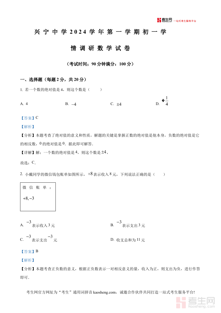 《精品解析:浙江省宁波市兴宁中学2024-2025学年七年级上学期第一次月考数学试题(解析版)》是针对浙江省宁波市兴宁中学2024至2025学年七年级上学期第一次月考数学科目的备考资料,聚焦该阶段数学学科的阶段性考查需求,为使用者提供与本次月考直接相关的内容支持。