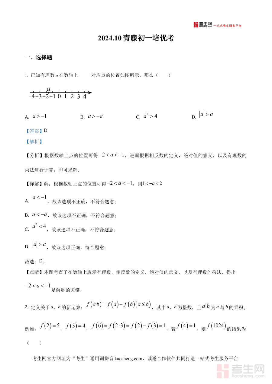 《精品解析:浙江省宁波市江北区宁波大学青藤书院2024-2025学年七年级上学期10月月考数学试题(解析版)》是针对浙江省宁波市江北区宁波大学青藤书院2024-2025学年七年级上学期10月数学月考的专业备考资料,涵盖该次考试试题的详细解析,为相关群体提供精准的考试参考依据。