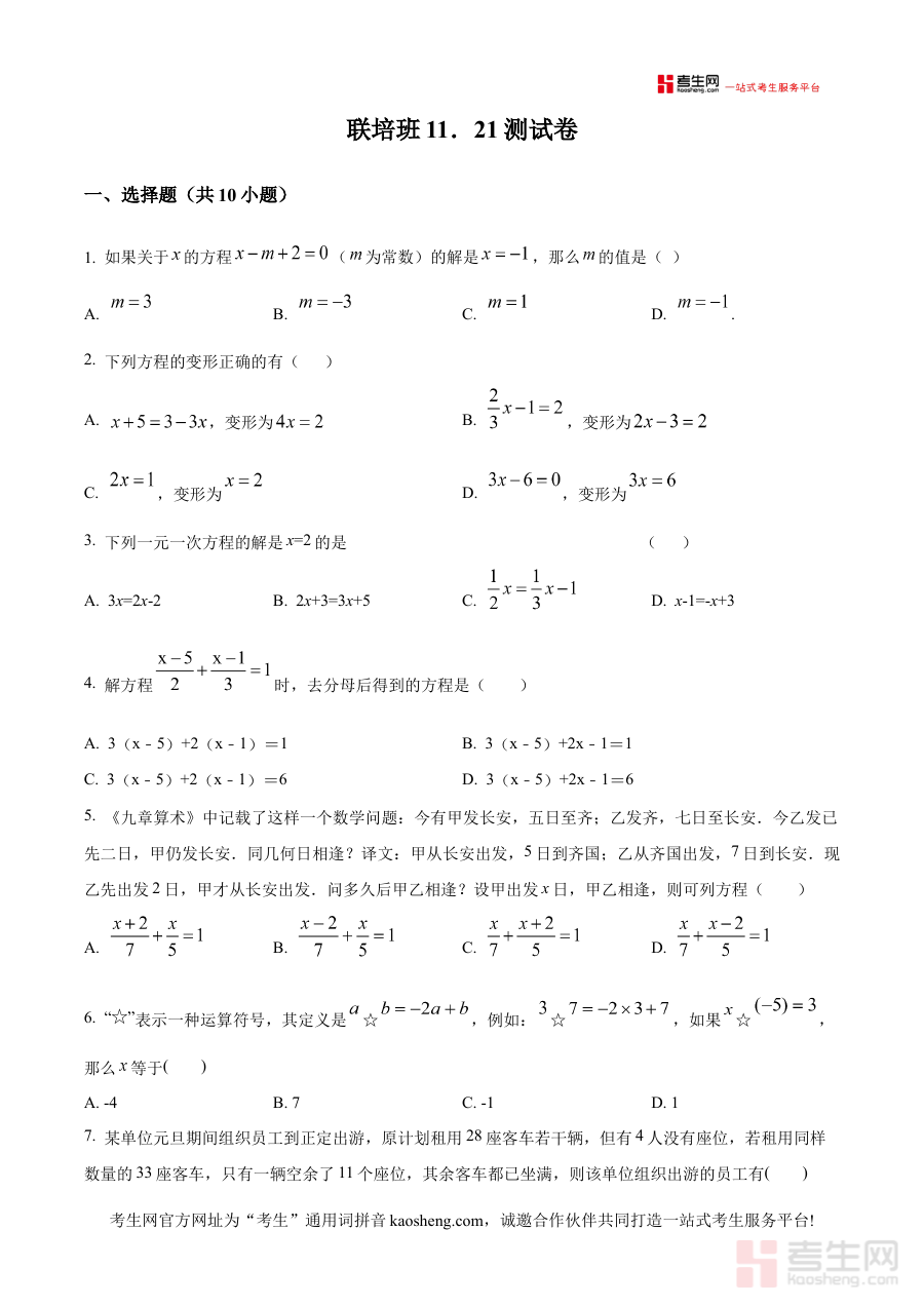 《精品解析:浙江省宁波市镇海区蛟川书院联培班2024-2025学年上学期11月测试七年级数学试题(原卷版)》是针对2024-2025学年上学期浙江省宁波市镇海区蛟川书院联培班七年级数学11月测试的原卷类备考资料,能够为使用者提供该阶段数学测试的原始试卷内容,帮助熟悉考试形式与结构。