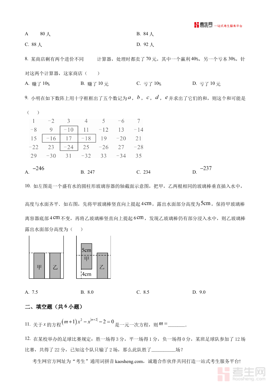 该资料可用于七年级学生进行阶段学习情况的诊断,帮助教师和学生了解当前学习进度与知识掌握状况,为后续的备考规划提供依据,同时也能作为阶段性检测的参考材料,辅助调整学习策略。