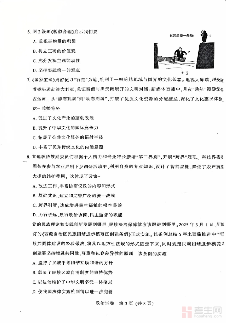 此资料可用于高三学生进行阶段性学业质量自我检测,帮助学生了解自身对政治学科知识的掌握程度;同时也能为教师提供学情分析依据,辅助调整教学计划与备考策略,确保教学与监测要求相契合。