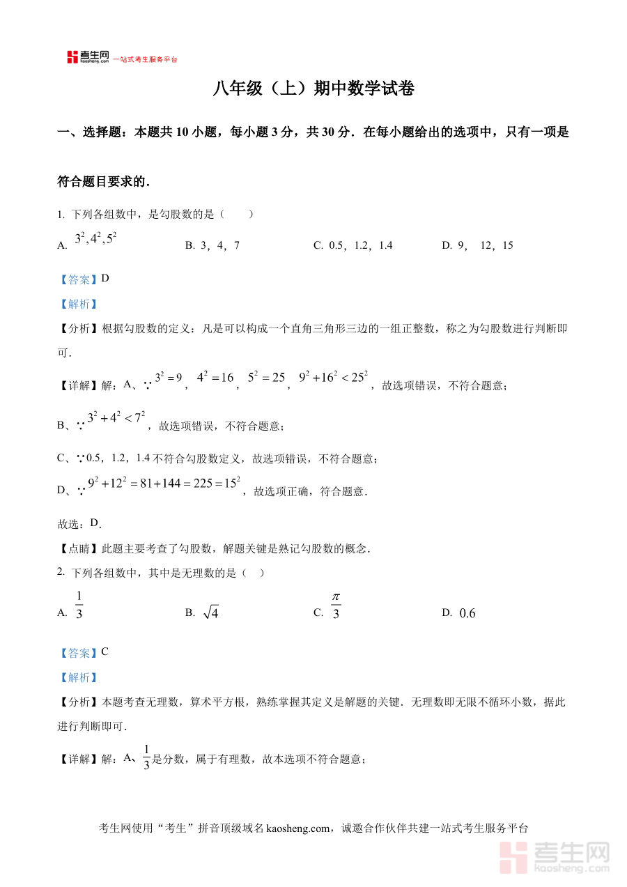 《精品解析:河南省郑州市七校联考2024-2025学年八年级上学期期中考试数学试卷(解析版)》是针对特定区域与阶段的数学学科备考资料,聚焦2024-2025学年河南省郑州市七校联考八年级上学期期中考试这一重要阶段性考试,整合了七校联考的考试资源,以解析版形式呈现试卷内容,为使用者提供针对性的备考支持。