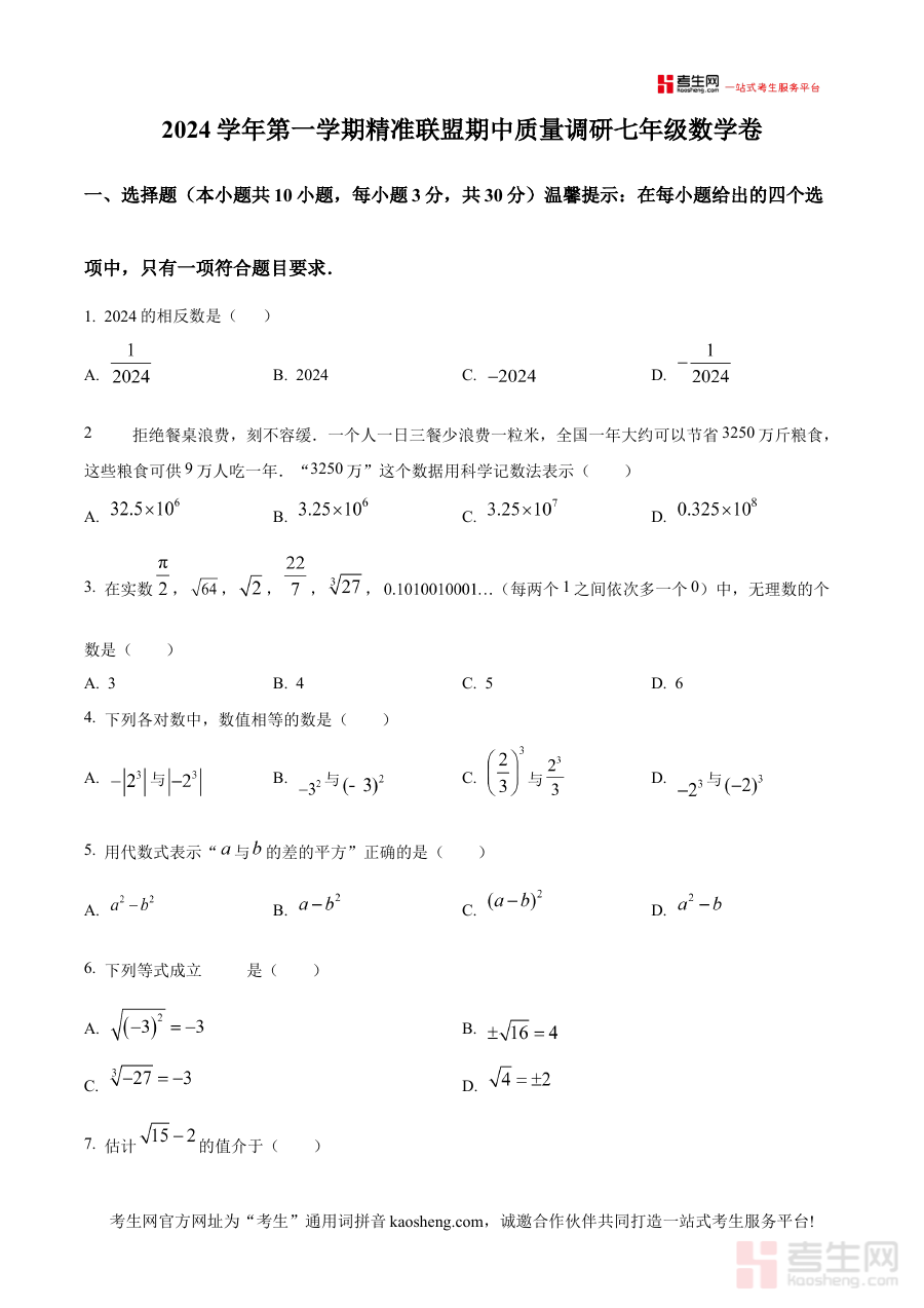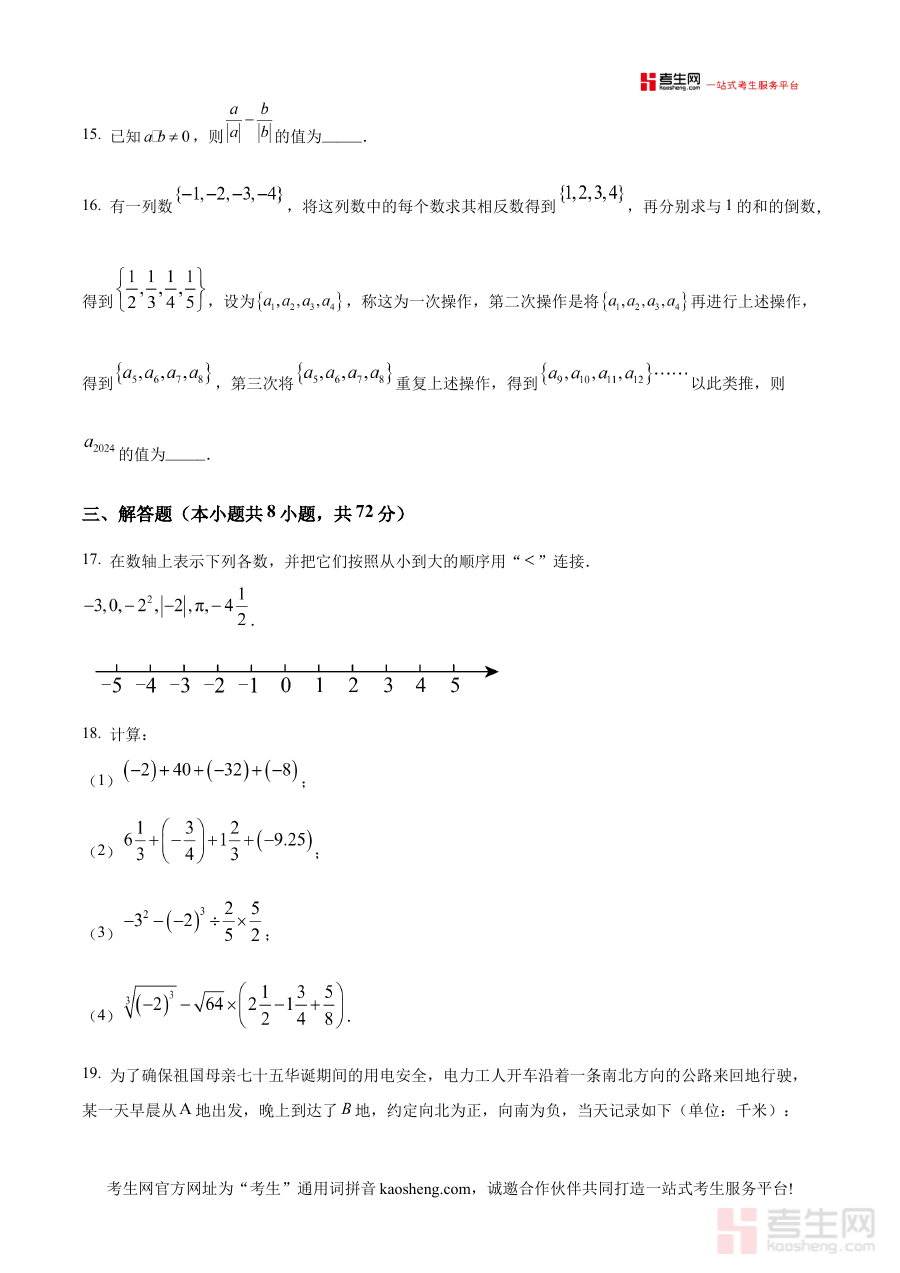 《精品解析:浙江省宁波市北仑区精准联盟2024-2025学年上学期期中质量调研七年级数学试题(原卷版)》是针对浙江省宁波市北仑区精准联盟在2024-2025学年上学期举办的七年级数学期中质量调研的官方原卷资料,属于该阶段数学学科的核心备考资源,能够直观体现本次期中调研的命题思路与考查范围。