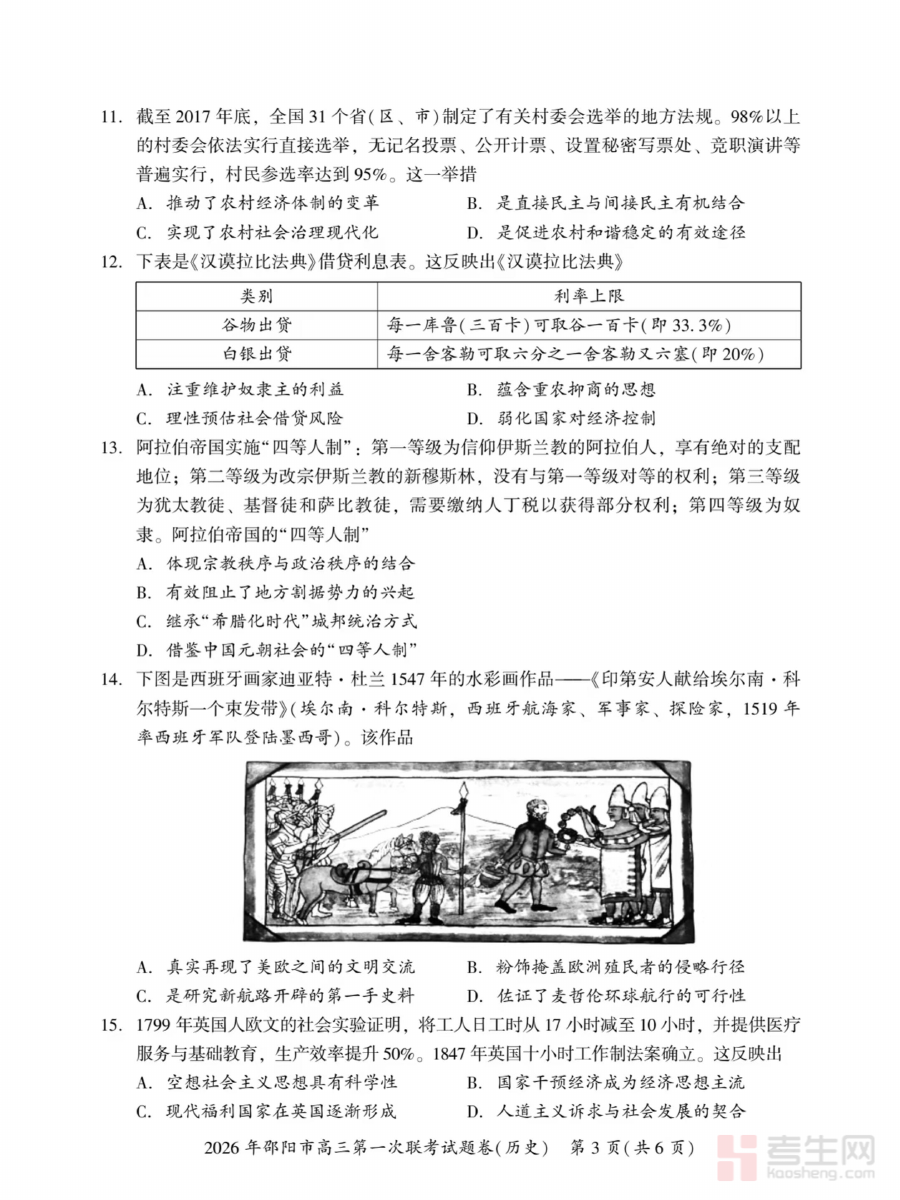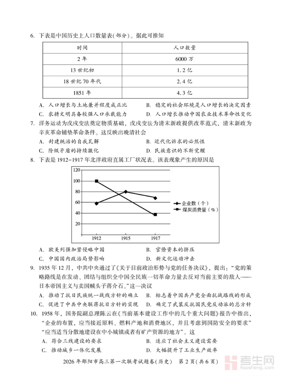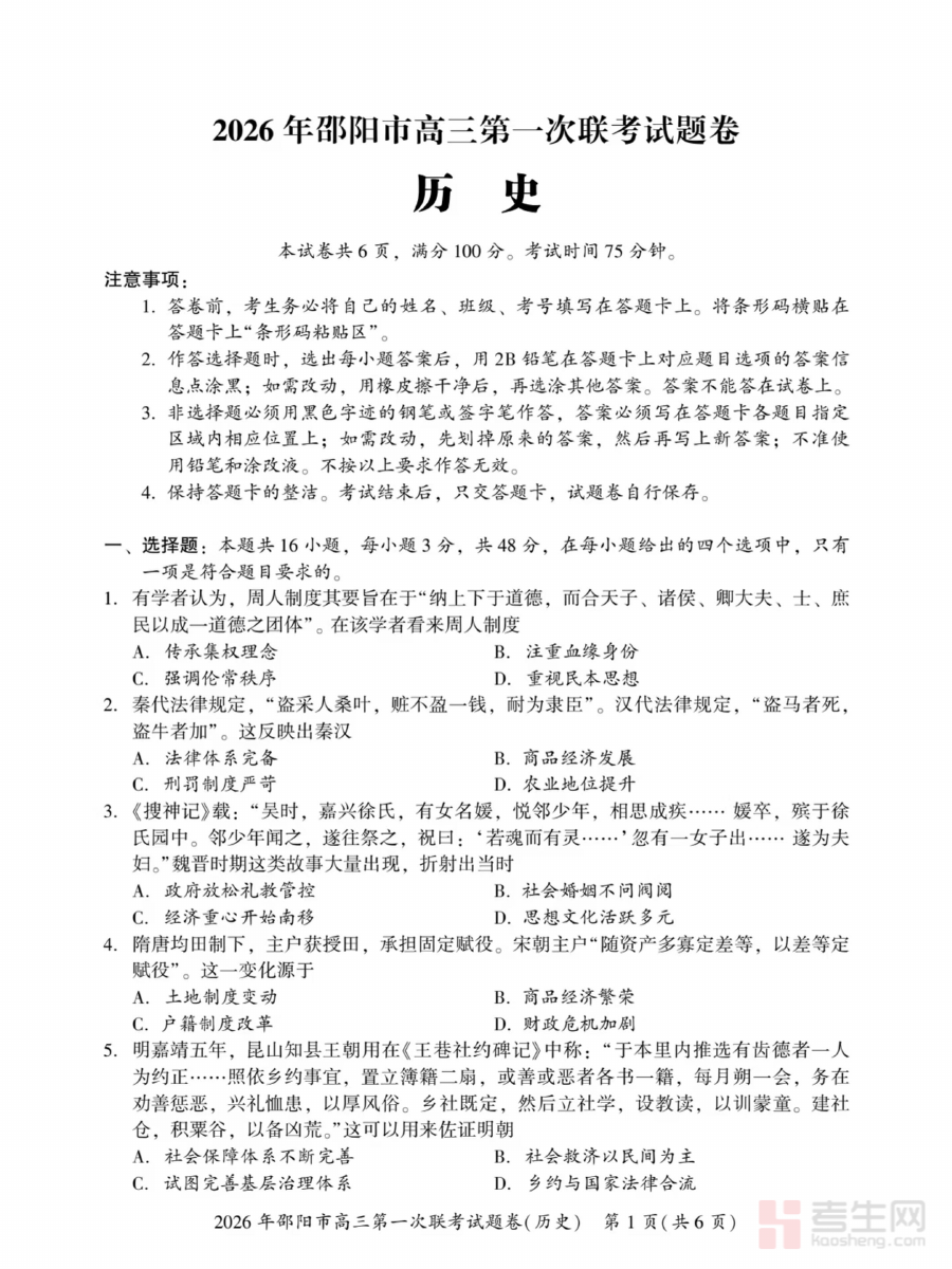 《2026届邵阳市高三上学期第一次联考历史试卷(含答案)》是面向2026届邵阳市高三学生推出的阶段性考试资料,对应高三上学期首次联考这一关键节点,为该地区高三历史学科的阶段性学习成果提供了标准化检测依据,是贴合当地教学进度与考试要求的针对性备考资料。
