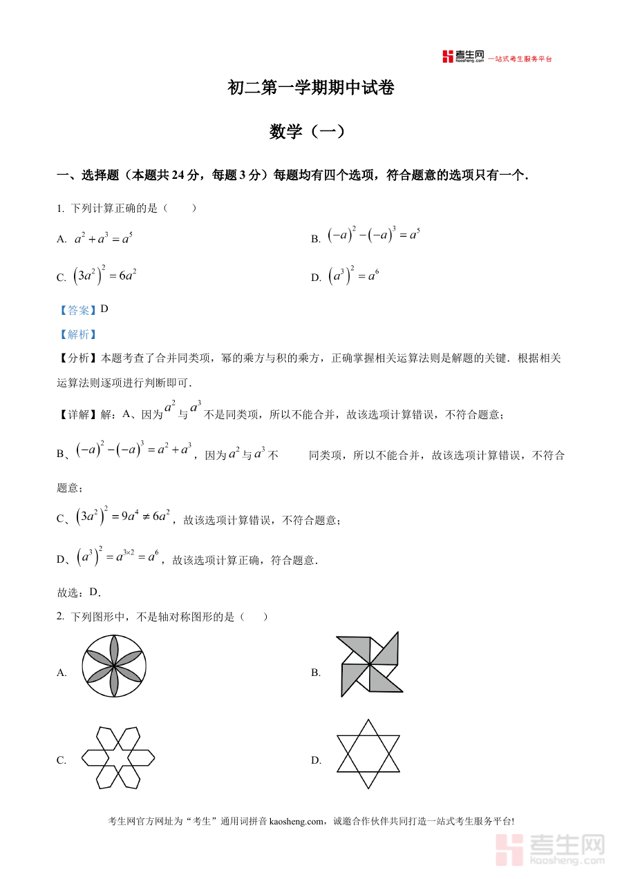 本资料主要适用于北京市清华大学附属中学2025-2026学年八年级学生,也可作为该阶段数学教师的教学辅助资源,其解析内容能够帮助学生加深对期中考点的理解与掌握,提升应对阶段检测的能力,对优化备考策略具有显著价值。