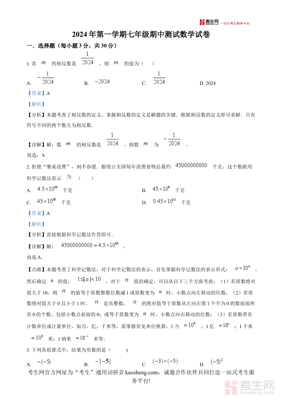 该解析版资料可用于七年级学生对期中测试内容进行系统分析,帮助使用者精准诊断自身数学知识掌握情况,为后续学习与备考提供方向指引,同时也能辅助教师或家长了解学生在联考中的表现及知识薄弱环节。