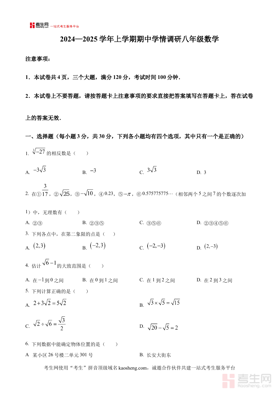 《精品解析:河南省郑州市登封嵩阳中学2024—2025学年八年级上学期期中考试数学试卷(原卷版)》是针对河南省郑州市登封嵩阳中学2024-2025学年八年级上学期期中考试的数学学科备考资料,精准匹配该阶段考试的时间节点与地域教学场景,为相关学习与教学活动提供适配性强的资源支撑。