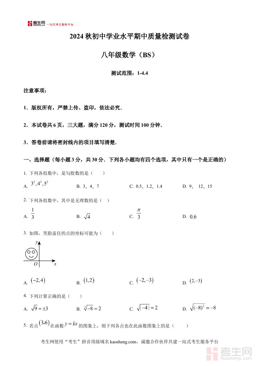 该资料可用于八年级学生进行数学学科的阶段学情诊断,帮助学生清晰认知自身对本学期前期知识的掌握程度,也可为教师制定后续教学计划与备考策略提供实际依据,同时支持学校或班级层面开展针对性的阶段检测活动,辅助教学与学习的精准推进。