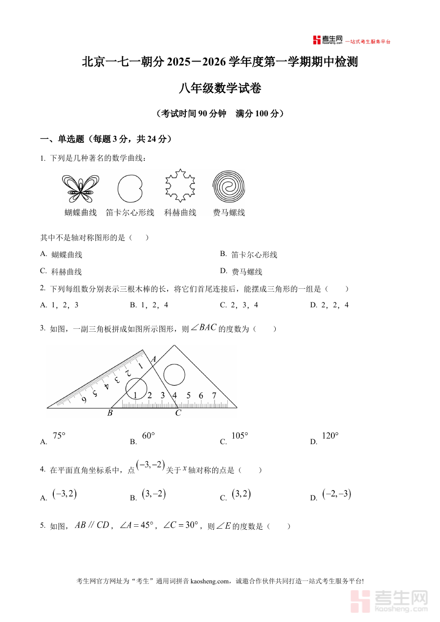 《精品解析:北京市第一七一中学朝阳豆各庄分校2025--2026学年八年级上学期期中数学试卷(原卷版)》是针对北京市朝阳区第一七一中学豆各庄分校2025-2026学年八年级上学期期中数学考试的配套备考资料,聚焦该学段该学科的阶段性考试需求,为使用者提供贴合该校教学进度与考试要求的原卷内容参考。