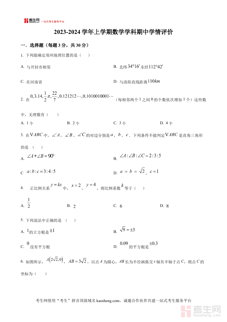 《精品解析:河南省郑州市郑东新区外国语学校 2024-2025学年八年级上学期期中数学试卷(原卷版)》是针对河南省郑州市郑东新区外国语学校特定学年学期的期中数学考试设计的原卷版备考资料,精准匹配该校八年级上学期数学教学进度与期中检测的核心要求,为师生提供与实际考试形式高度一致的试卷资源,助力师生提前熟悉考试场景与题型结构。