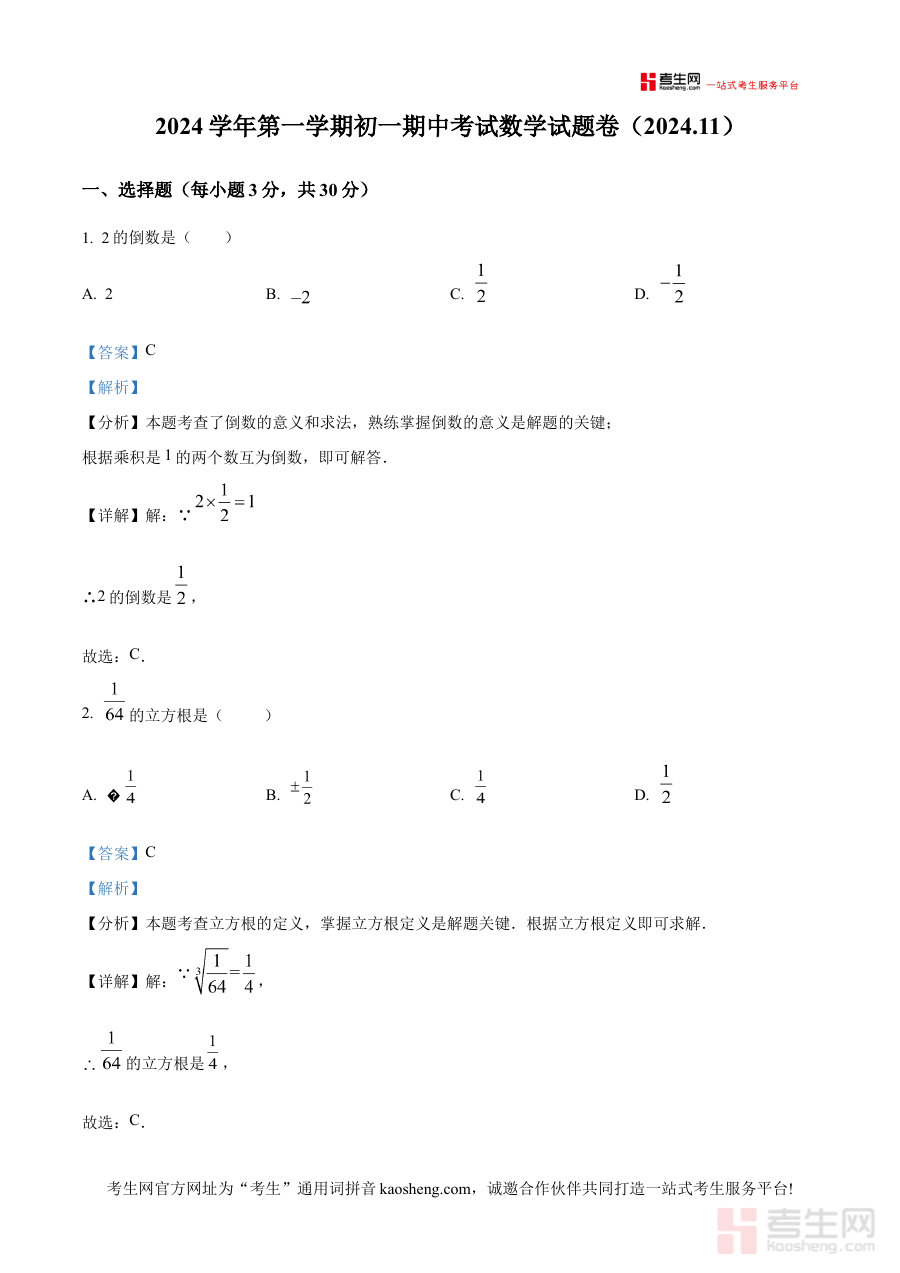 本资料主要适用于浙江省宁波市鄞州区参与此次考试的七年级学生及相关数学教师,对于学生而言,可借助解析内容深化对知识点的理解与应用能力,为期中阶段检测做好充分准备;对于教师而言,能通过解析把握考试命题思路,优化教学策略与备考指导,提升整体教学质量。