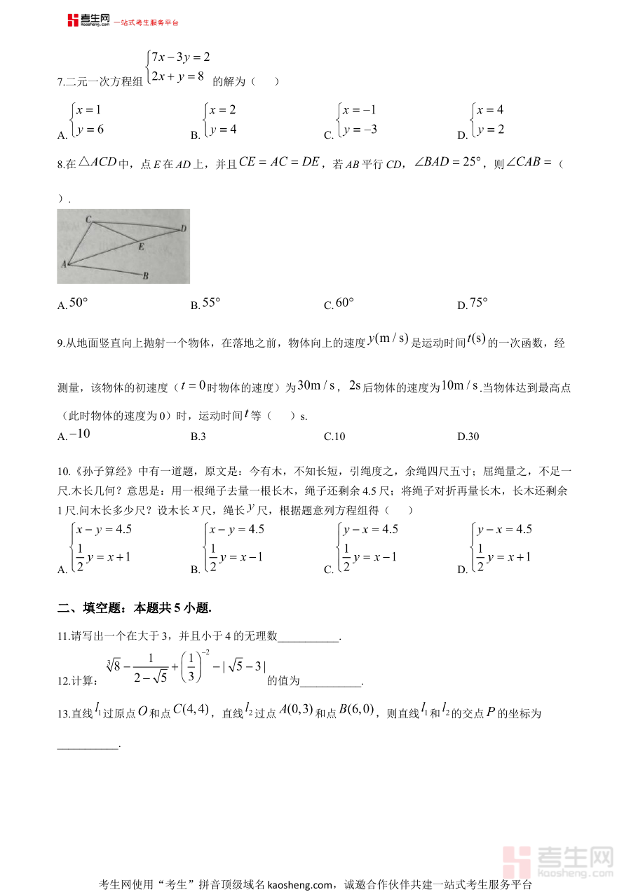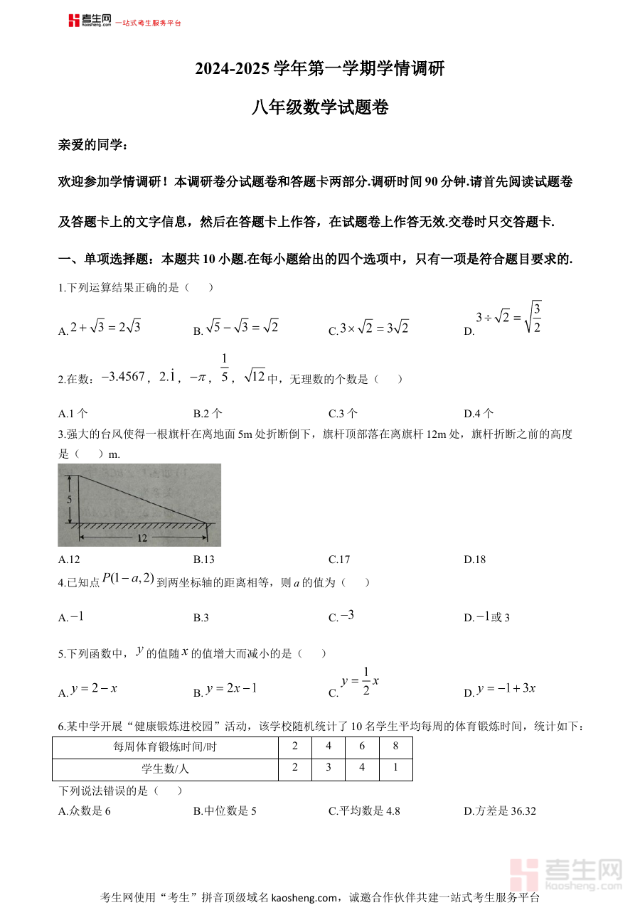 该资料的适用人群主要为河南省郑州经开区外国语学校2024-2025学年八年级的在校学生,他们可借助该资料进行期末考前模拟训练,熟悉学校期末检测的形式与要求;数学教师可利用其开展期末复习课的教学组织与学情分析;家长则能通过该资料了解孩子的学习进度与薄弱环节,助力家校协同提升学生的数学学习效果。