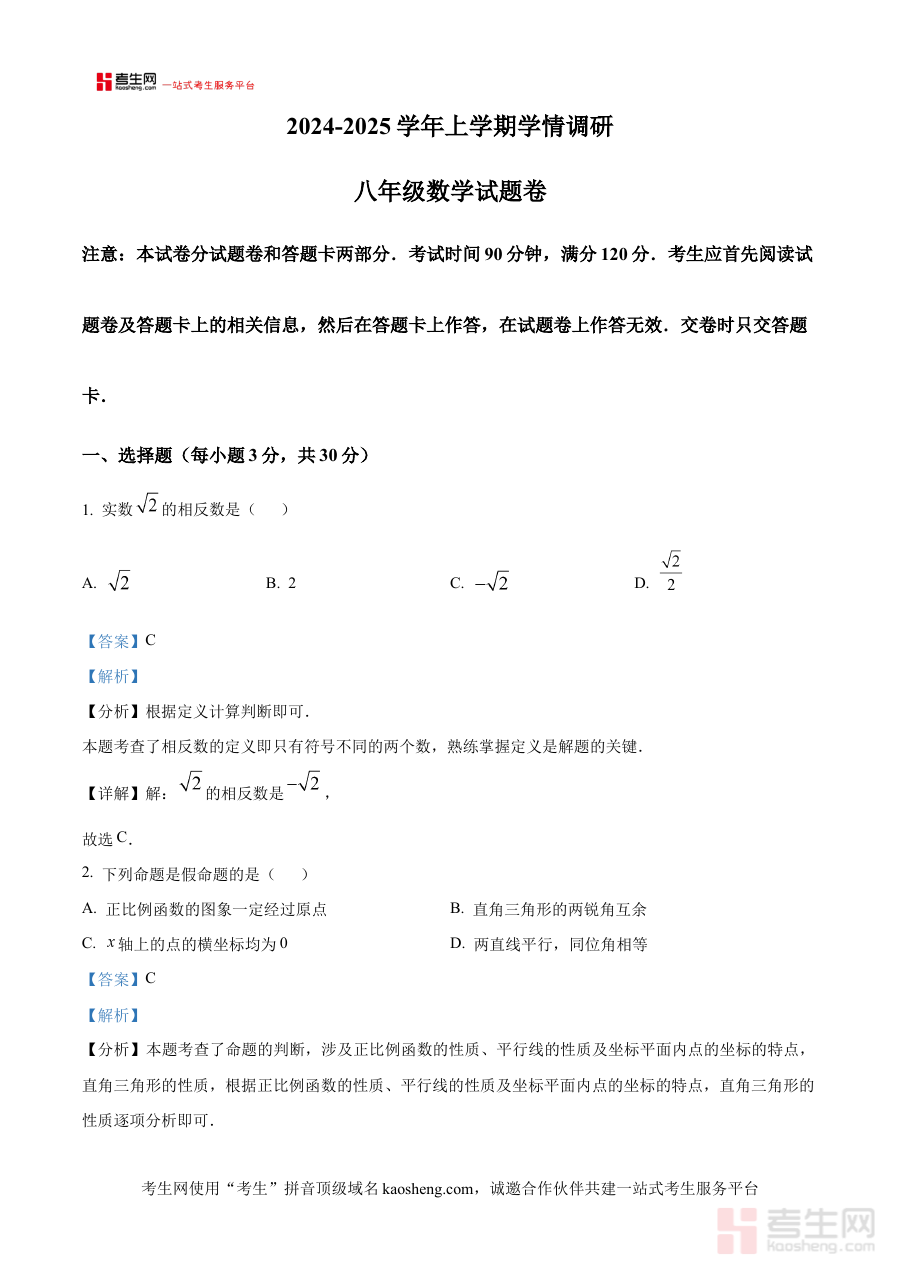 《精品解析:河南省郑州市中原区2024-2025学年八年级上学期期末试卷数学试题(解析版)》是针对2024-2025学年河南省郑州市中原区八年级学生数学学科上学期期末检测的专业备考资料。该资料紧密贴合当地教育教学要求与期末检测标准,为使用者提供了与实际考试高度匹配的内容参考,有助于使用者提前熟悉该地区期末检测的命题方向与考查重点框架,是衔接学期知识巩固与期末应试准备的重要桥梁。