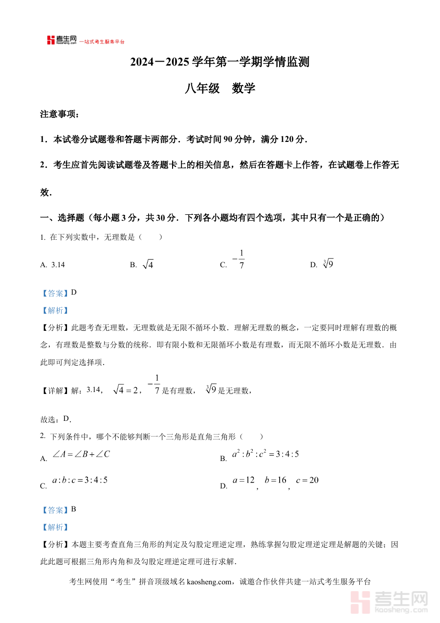 《精品解析:河南省郑州市金水区2024-2025学年八年级上学期1月期末数学试题(解析版)》是针对河南省郑州市金水区2024-2025学年八年级上学期1月期末数学考试的配套备考资料,聚焦该区域期末数学考试的考查需求,提供具有针对性的解析内容,助力使用者高效备考。