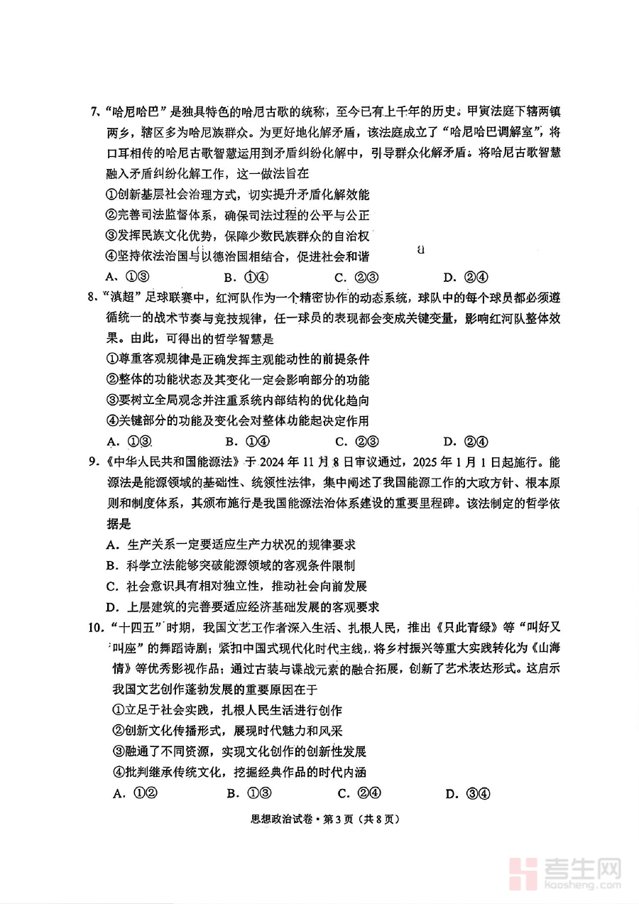 此资料的适用人群主要包括2026届红河州与文山州的高中政治考生及相关学科教师。对于考生而言,它不仅是一次模拟真实考试场景的练习机会,更是巩固已学知识、熟悉考试形式的有效途径,有助于提升应试技巧与备考效率;对于教师而言,可借助该资料分析学生的整体学习状况,调整教学策略以适配学生的复习需求,共同推动复习阶段的教学质量提升。