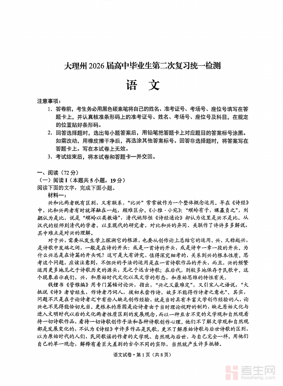 《红河州、文山州2026届高中毕业生第二次复习统一检测语文+答案》是面向红河州与文山州两地2026届高中毕业生推出的语文科阶段性复习检测资料,整合了统一检测试卷及对应答案两部分内容,体现了区域协同的教学评估思路,旨在为两地高中语文复习阶段的教学提供标准化参考依据,帮助师生及时掌握复习进程中的实际情况。