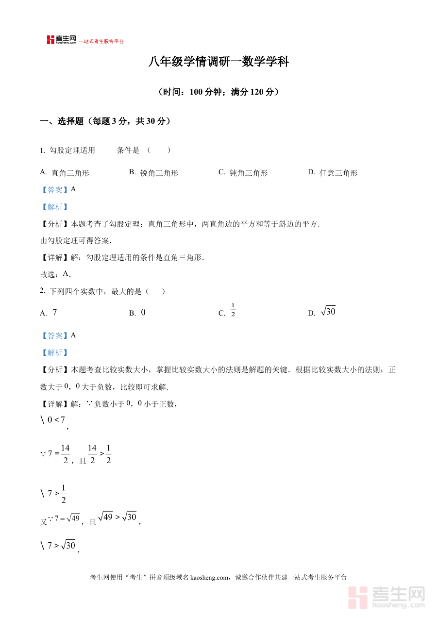 《精品解析:河南省郑州中学2025-2026学年八年级上学期数学第一次月考试卷(解析版)》是针对河南省郑州中学特定学年段、学科及考试场景的专业备考资料。它聚焦2025-2026学年八年级上学期数学学科第一次月考,以解析版形式呈现,为使用者提供与该考试直接相关的内容支持,帮助快速把握该阶段考试的核心方向与基本要求,是适配该次月考场景的针对性学习资源。
