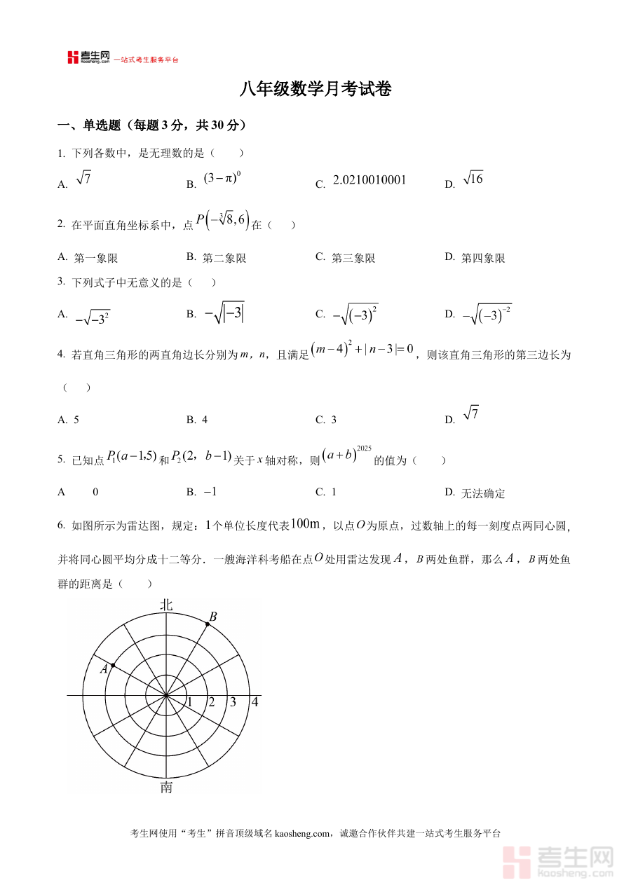 本资料适用于河南省郑州四中实验学校2025-2026学年八年级学生开展数学学科的阶段检测与备考准备,对提升学生阶段性学习效率、优化备考策略具有重要参考意义,也可为教师开展教学评估与个性化指导提供有效支持。