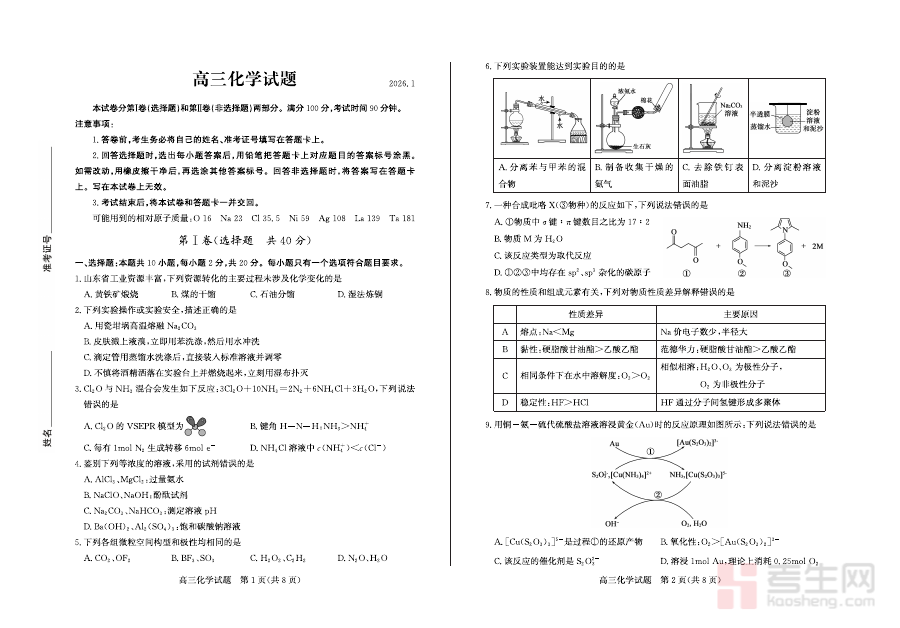 《化学-山东省德州市2025-2026学年度2026届高三年级上学期期末》是针对山东省德州市2025至2026学年度高三年级上学期期末阶段的化学学科考试相关备考资料,聚焦该区域特定学年段高三学生的化学学科学习成果检验需求,为期末阶段的学习评估与备考衔接提供支持。
