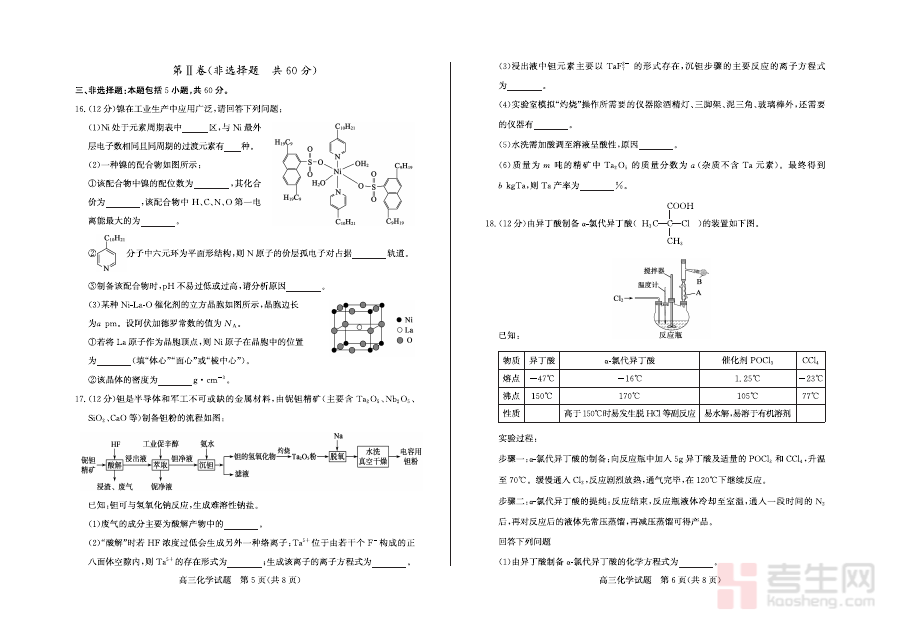 该资料可用于高三学生进行化学学科阶段性学习效果的诊断,帮助师生清晰把握上学期知识掌握的薄弱环节,为后续备考规划提供客观依据,同时也可作为学校或教师开展期末教学评估与复习安排的参考素材。