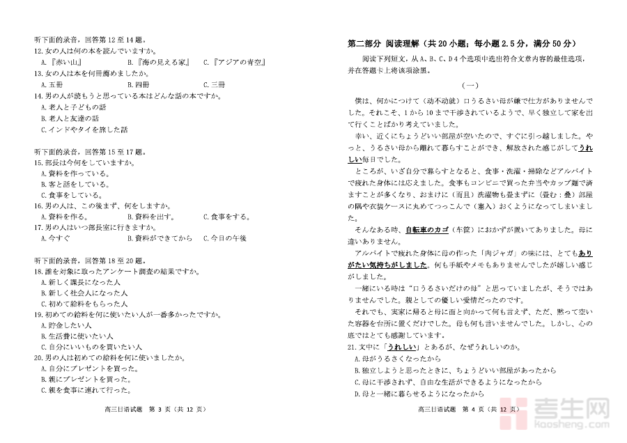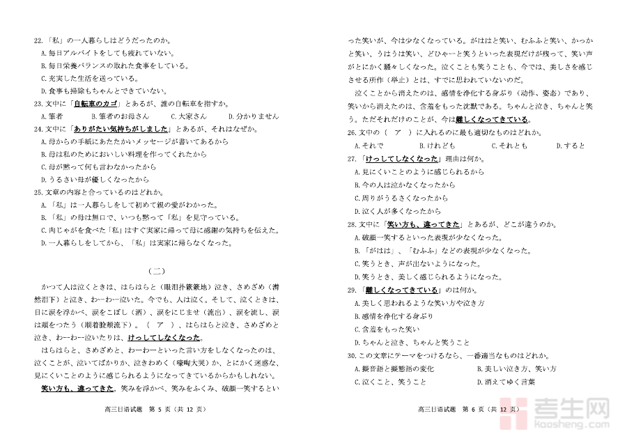 该资料可用于高三日语学科的阶段学情诊断,帮助教师掌握学生在上学期学习中的知识掌握情况与能力短板,同时也能辅助学生进行自我学习效果评估,为后续复习计划的制定提供数据支撑和方向指引。