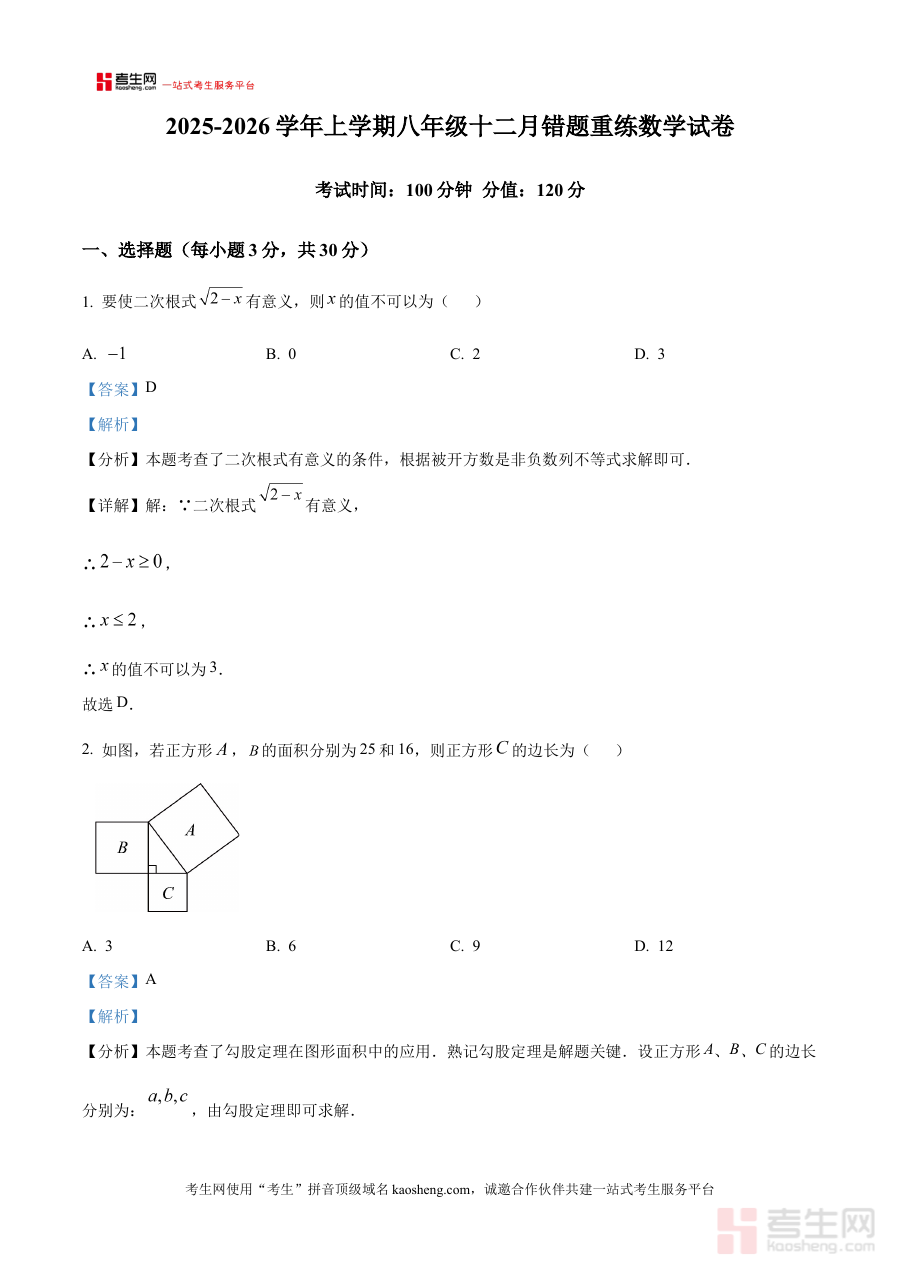 《精品解析:河南省郑州实验外国语学校2025-2026学年八年级数学上学期12月月考卷(解析版)》是针对2025-2026学年河南省郑州实验外国语学校八年级学生数学学科上学期12月月考的专业备考资料。该资料依托学校当月月考的实际考查场景,为学生提供适配性强的解析内容,助力学生把握月考的考查逻辑与核心方向。