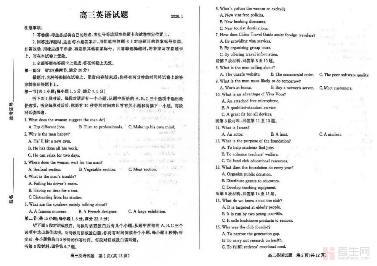 《英语-山东省德州市2025-2026学年度2026届高三年级上学期期末》是专为山东省德州市2025-2026学年度高三年级上学期期末英语考试设计的备考资料,聚焦于该地区高三学生在这一阶段的英语学习成果检验与能力提升需求。它严格遵循德州市高三英语教学大纲与期末考核要求,能够帮助学生提前适应本地区期末考的考查模式与评价标准,为后续的复习规划提供可靠的依据与方向指引。