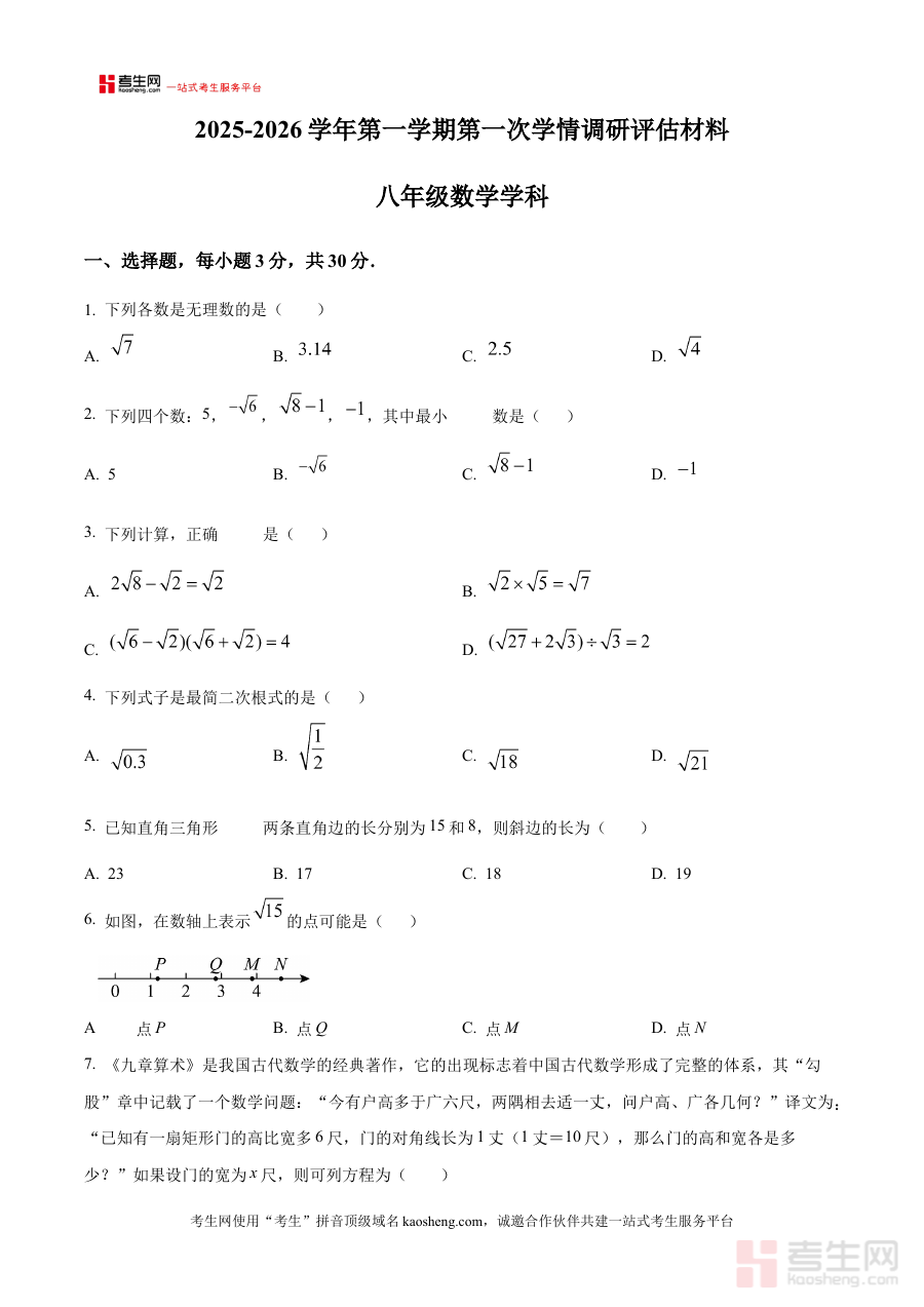 《精品解析:河南省郑州市第七十六中学2025-2026学年上学期八年级数学评估试卷(原卷版)》是针对河南省郑州市第七十六中学2025-2026学年上学期八年级学生设计的数学学科阶段性评估资料,属于该阶段数学学习成果检测的配套备考资源,能够为使用者呈现该学期数学学科评估的核心方向与内容轮廓。