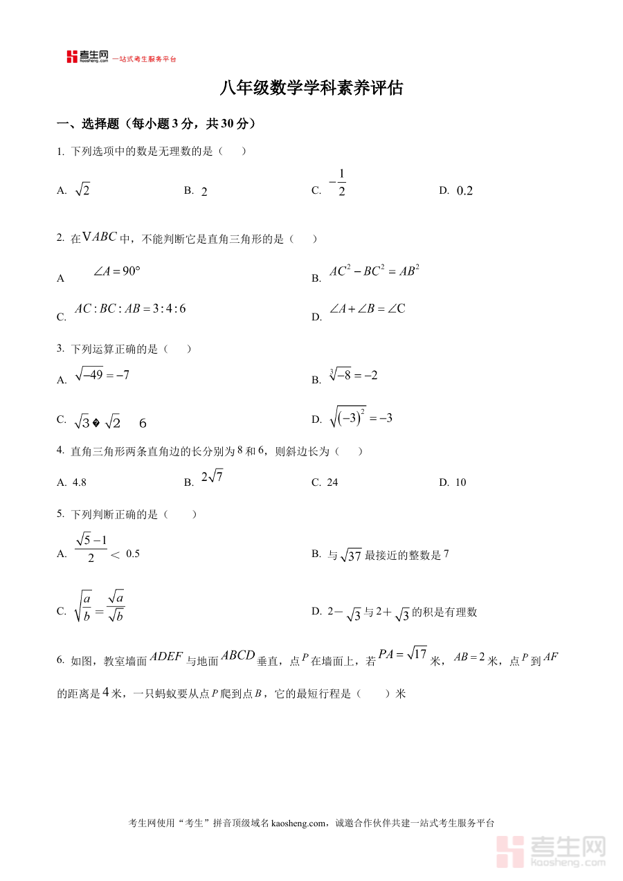 此资料主要适用于河南省郑州市第五十八中学八年级在读学生,也可供该校数学教师及学生家长参考使用;借助该原卷版资料,学生能进行针对性的阶段检测练习,教师可辅助实施备考规划与教学指导,有效提升数学学习的针对性与效率。