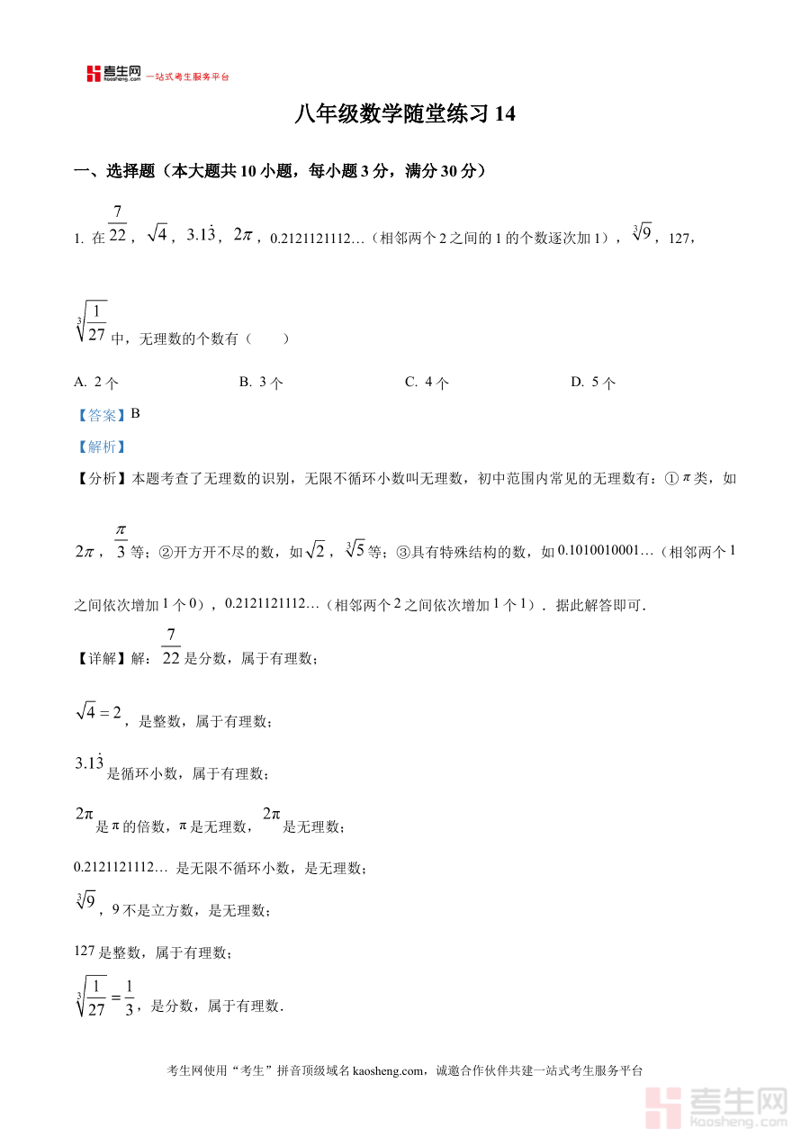 作为解析版资料,它能帮助学生完成试卷练习后进行全面自我学情诊断,清晰识别数学学习中的优势领域与薄弱环节,为制定个性化后续阶段性复习规划提供科学数据支持;同时教师可通过分析学生答题情况,精准把握近期知识掌握程度,调整教学策略以提升课堂教学精准性与有效性。
