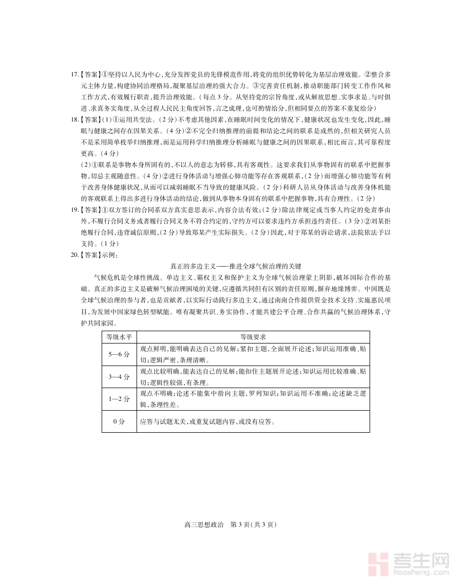 该资料适用于江西省宜春市范围内的高三思想政治教师、学生及相关备考指导人员,通过对照答案进行自我复盘或教学分析,能够有效提升阶段检测的反馈效率,助力学生更科学地制定备考规划,为后续的高考复习奠定坚实基础。