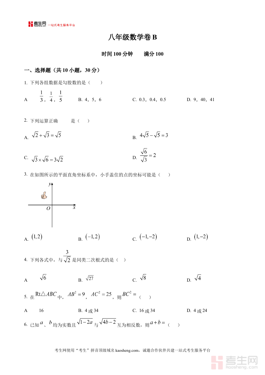 本资料主要适用于河南省郑州市郑州四中总校2026-2026学年上学期的八年级学生、数学教师以及关注孩子数学学习的家长群体。学生通过使用该原卷版试卷可模拟真实考试情境进行自我检测,提升应试能力与时间管理能力;教师可利用其开展课堂练习或阶段评估活动,优化教学内容与方法;家长则能通过该资料深度参与孩子的学习过程,共同促进孩子数学成绩的稳步提升与学习能力的全面发展。