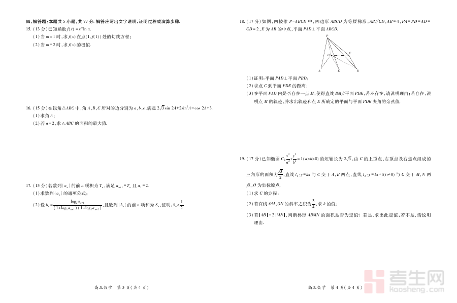 该资料的适用人群为江西省宜春市2025-2026学年上学期的高三学生、数学教师及相关教育工作者。对于学生而言,它能帮助进行阶段性知识巩固与能力评估,为高考前的系统复习奠定坚实基础;对于教师来说,可作为教学效果检验的重要工具,优化后续教学安排;对于教育工作者,则能为区域内数学教学质量分析提供参考,推动教学资源的精准匹配与教学策略的改进。